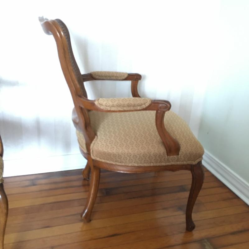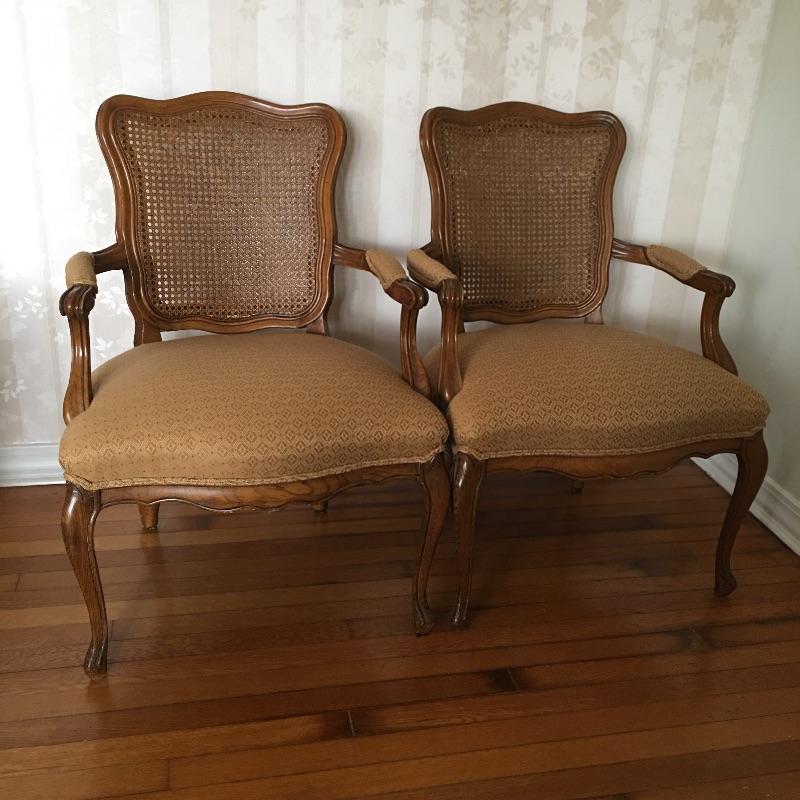 Pair of Queen Ann style cane back chairs. This chairs will make a great addition to any room they reside in. Chairs measure 24.5” x 27” x 34.2 with a 17.5” seat height. Chairs have a few scratches but are in overall good shape, see pictures.
