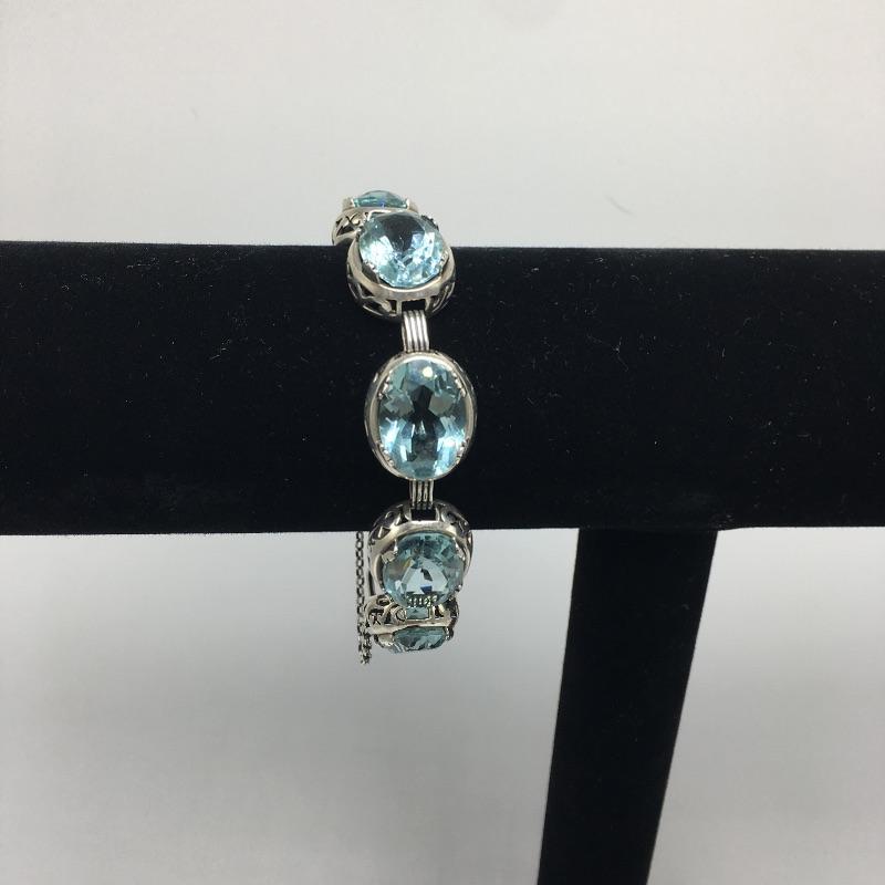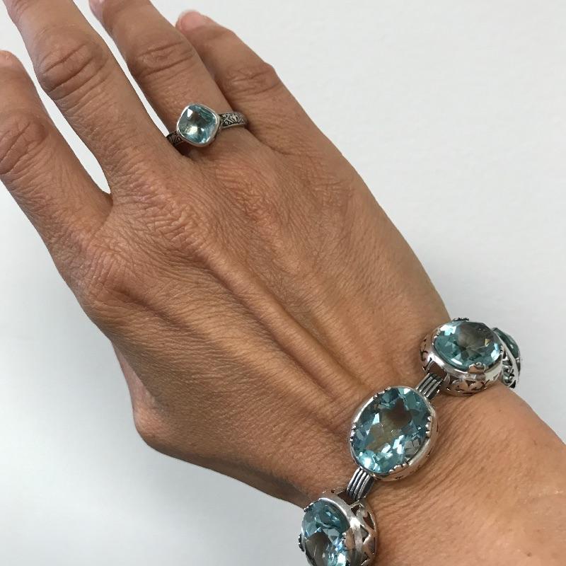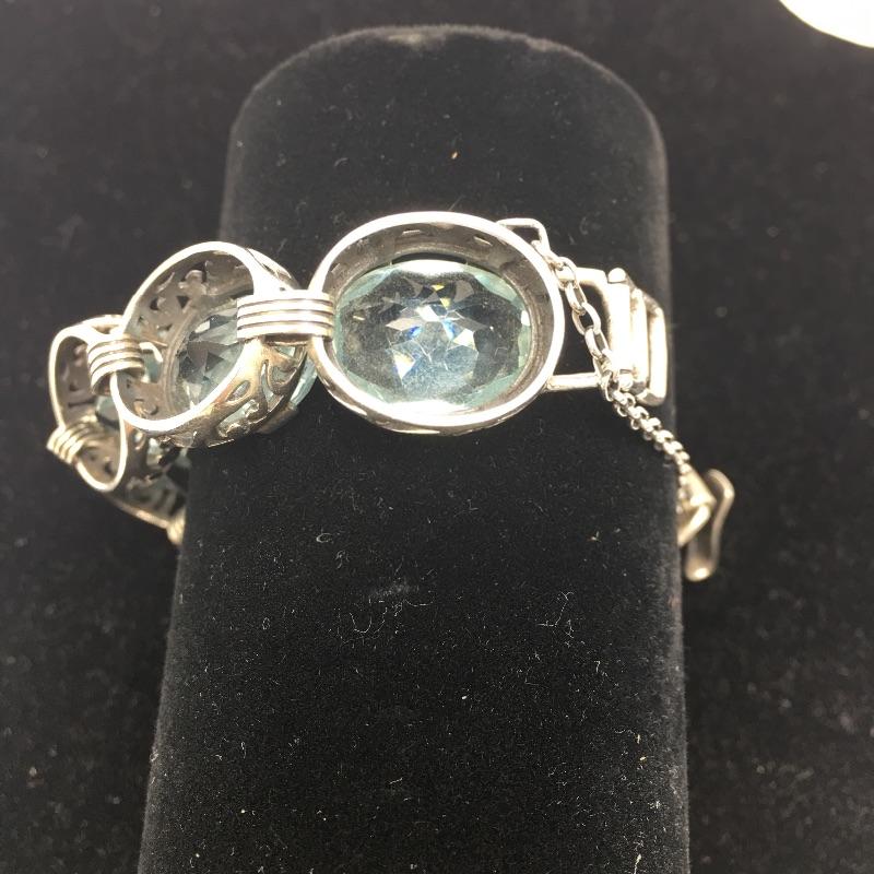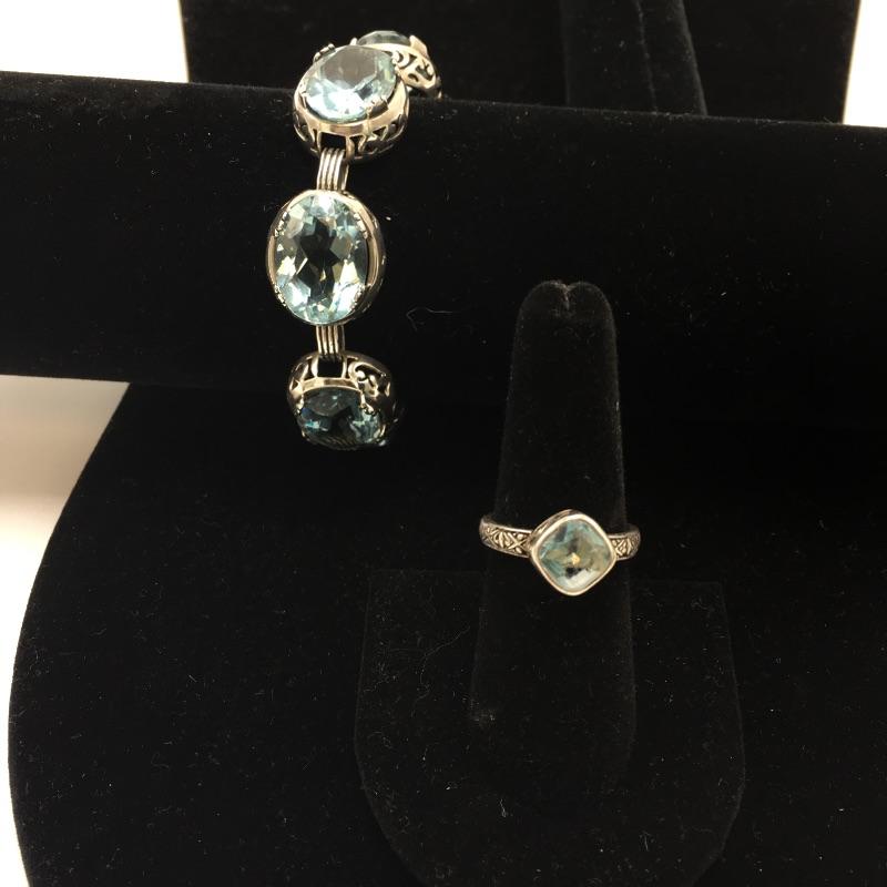 Lot 56 - Aqua Glass and Sterling Bracelet & Ring