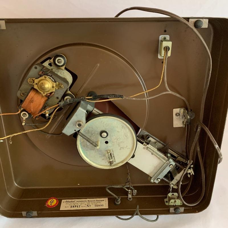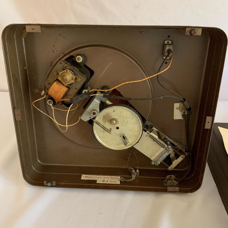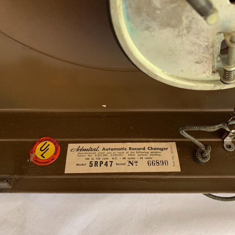 This lot includes two Admiral turntables, model 5RP47. Both make a humming sound when plugged in.