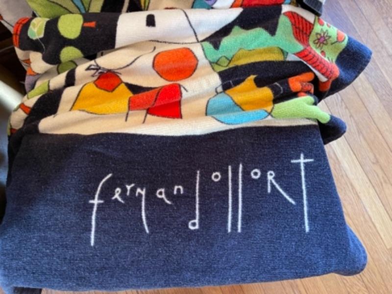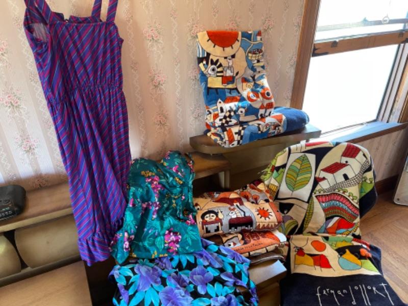 Lot 56. Two swim suits, five beach towels (Ferdinando de la Palma) and one sundress--$35