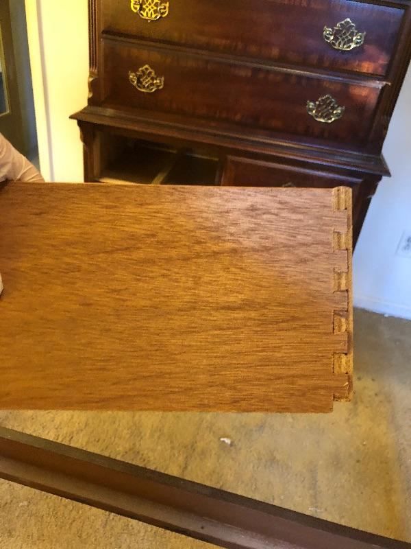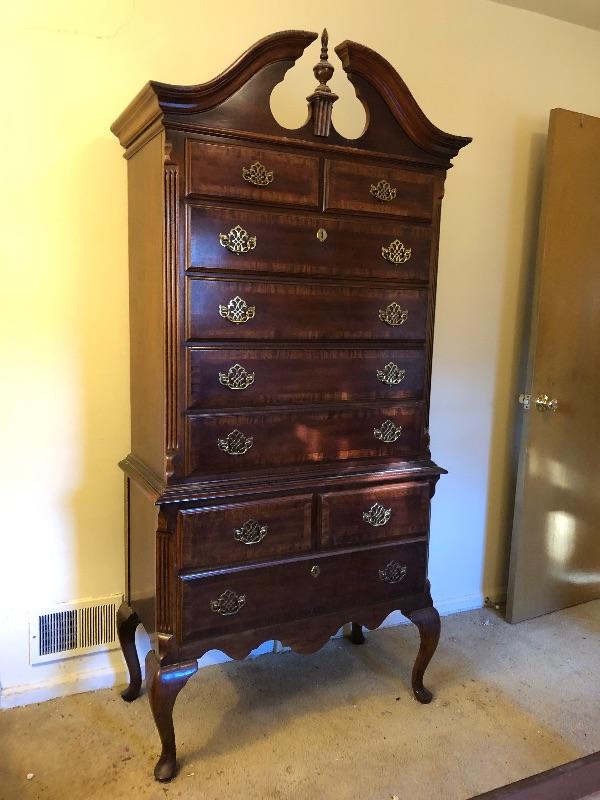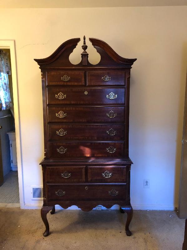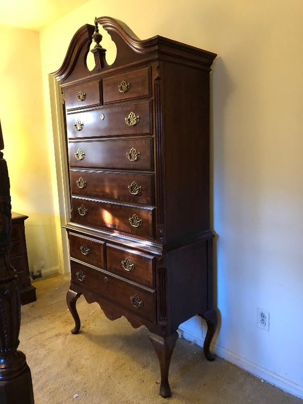 Mahogany Unavial Bedroom Furniture Solid wood High Boy. Inlaid wood banding around the edges of the drawers.