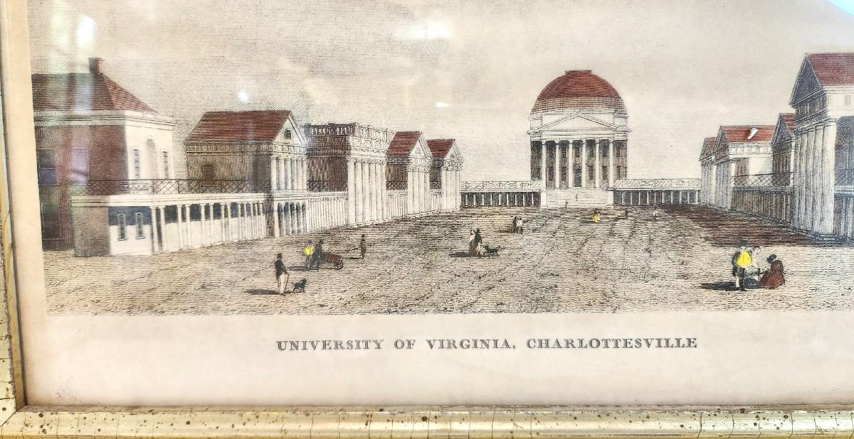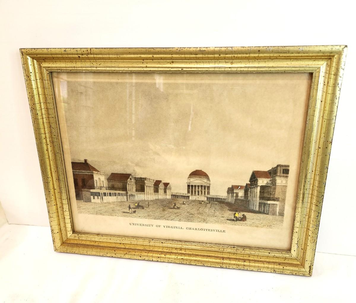 Color Lithograph, framed, 19th century - University of Virginia at Charlottesville. 18" across, 14.5" tall. Vintage condition.