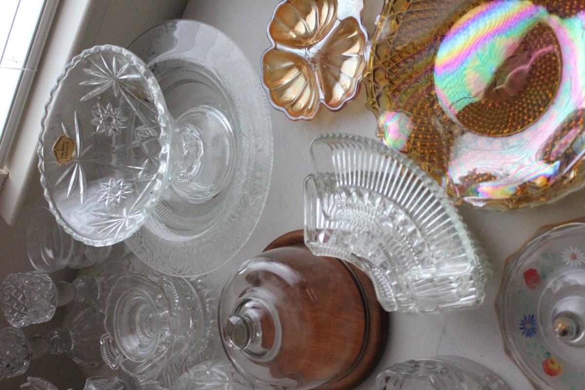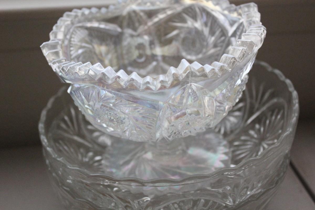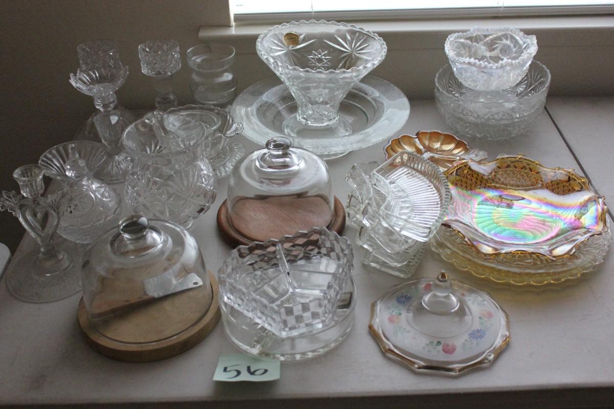 Lot 56 Vintage Cut Glass & Crystal Pieces, Carnival Glass