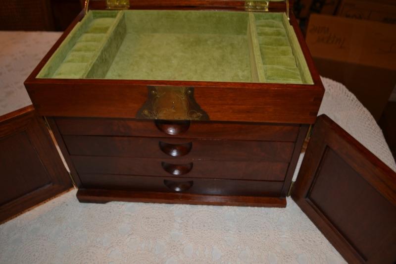 VINTAGE JEWELRY BOX. 14" X 9" X 12"