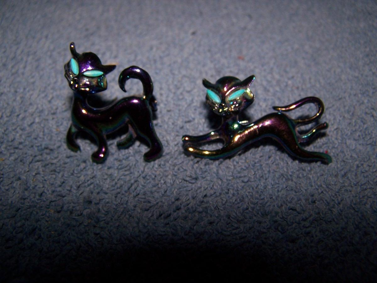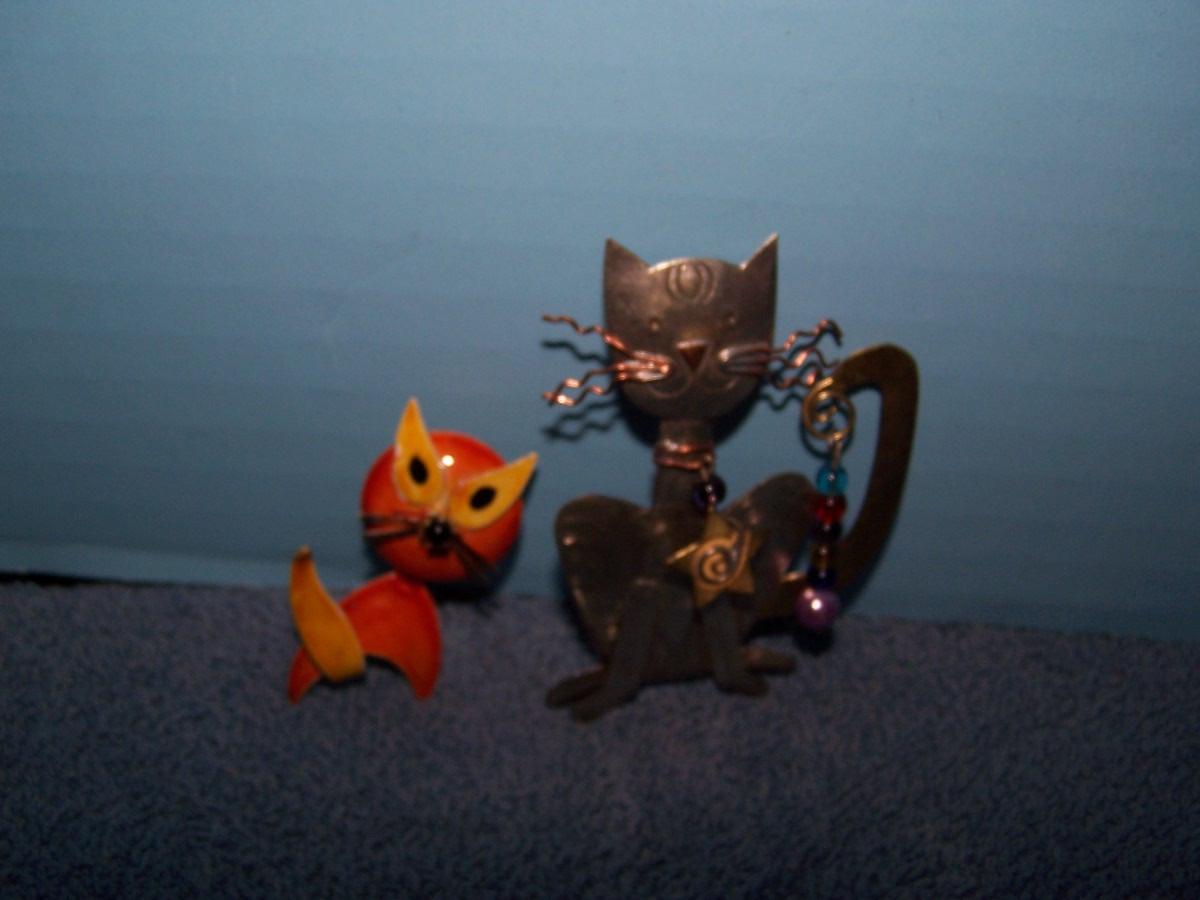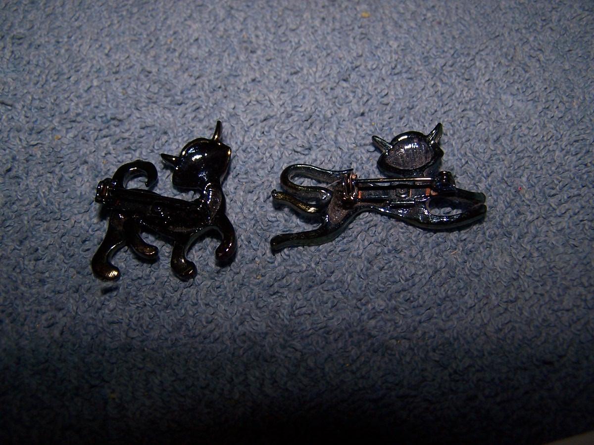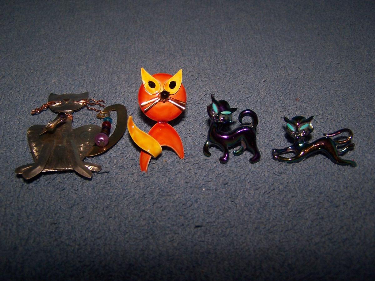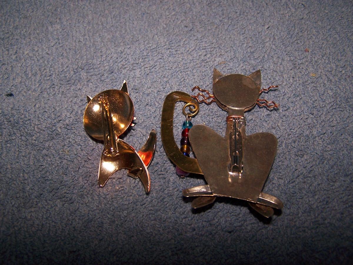THESE ARE WILD & CRAZY METAL CAT PINS!!! UNMARKED.. ORANGE CAT IS 1 7/8'' TALL.. LIGHT WEAR..