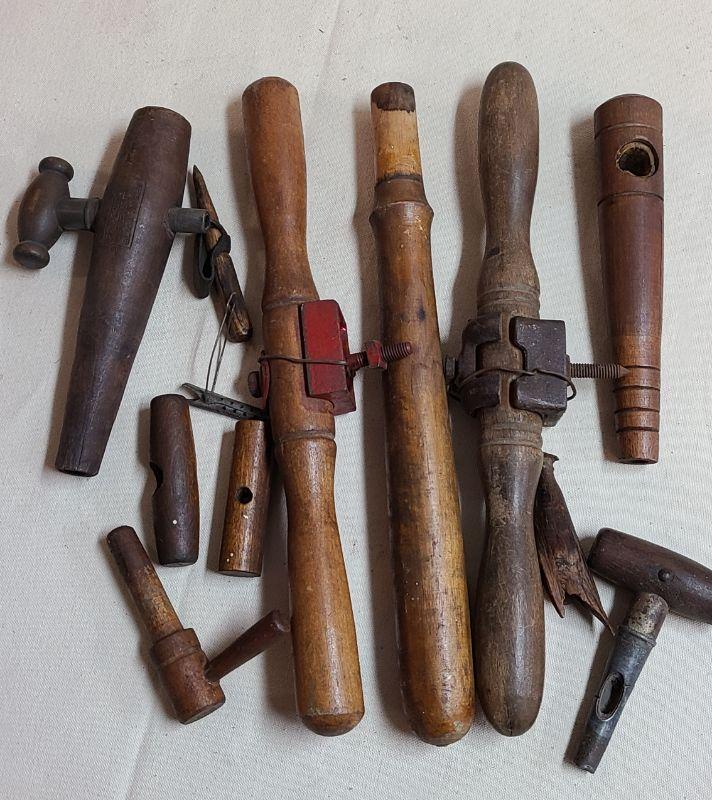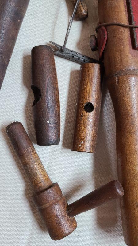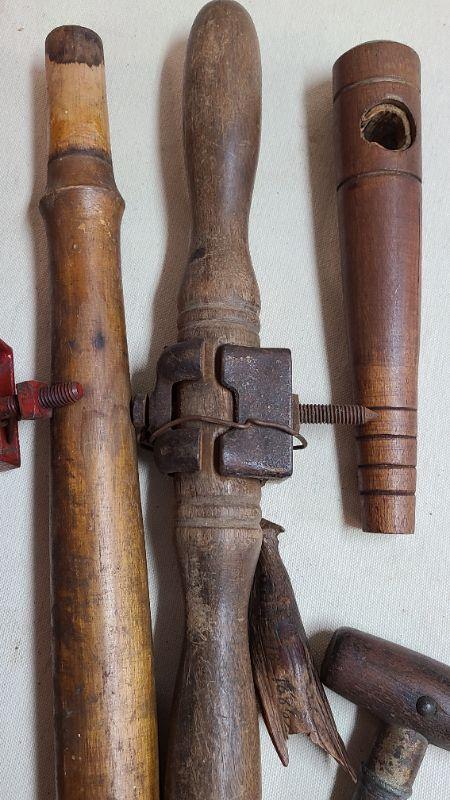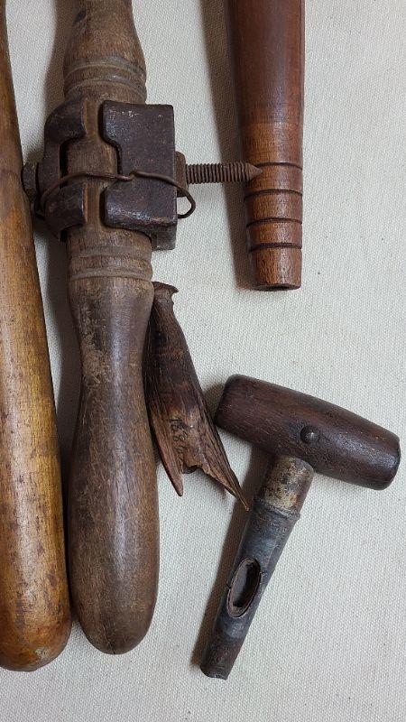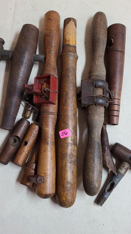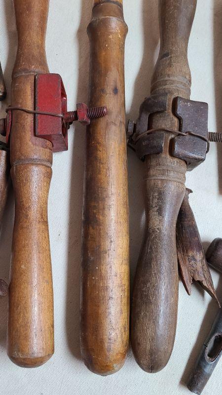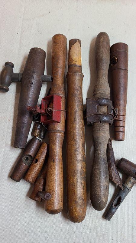 Antique Taps and wood handles. Please see all pictures for condition of the items listed and what is included in the lot. Pictures will also show any measurements if taken and is the best representation of the items. Thank you for looking and have fun bidding! We appreciate Treasure Hunters!
