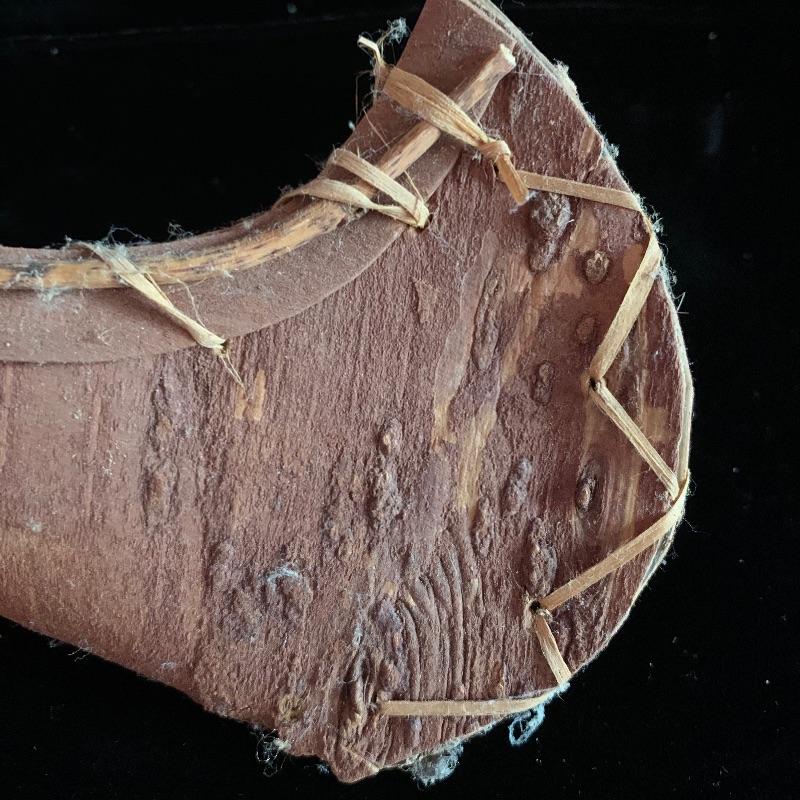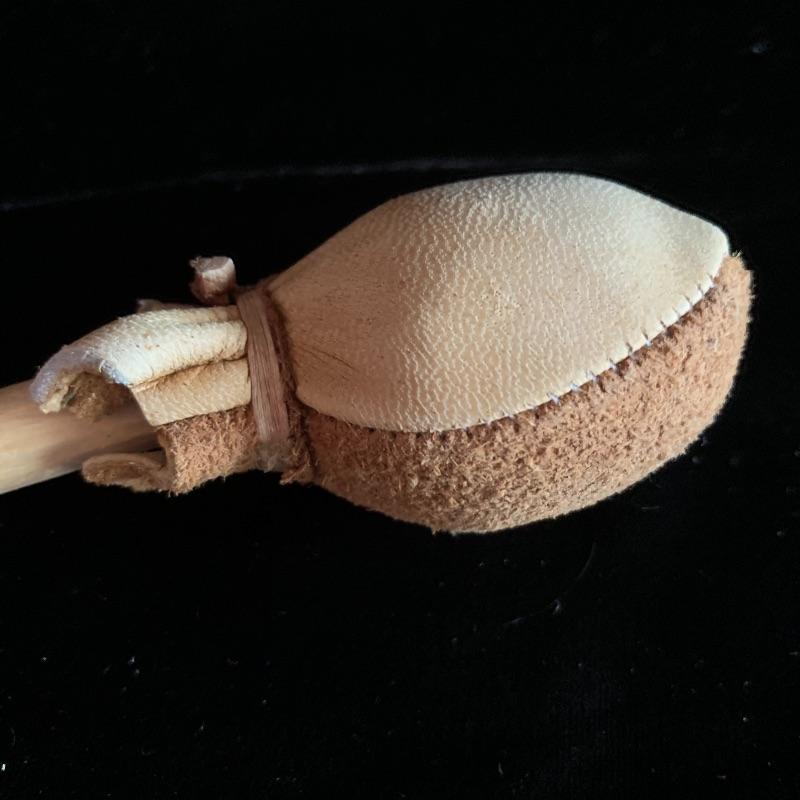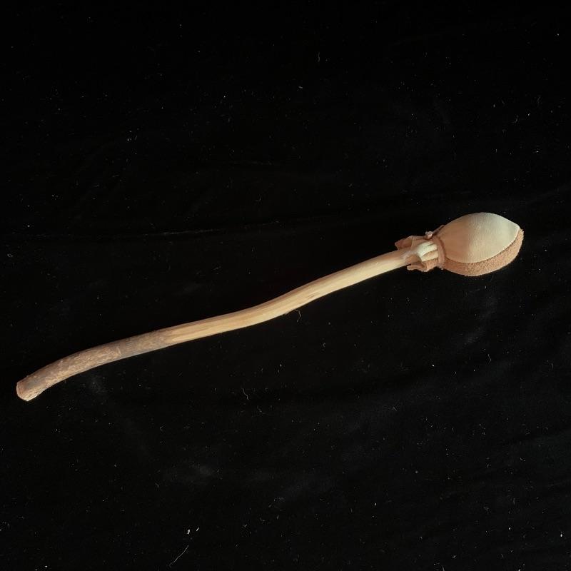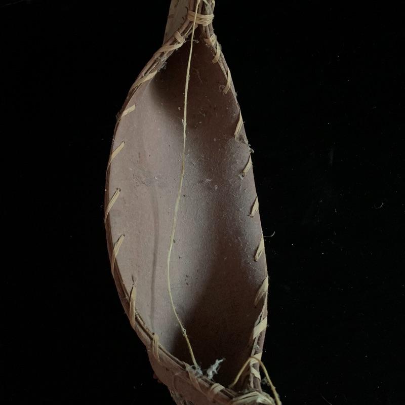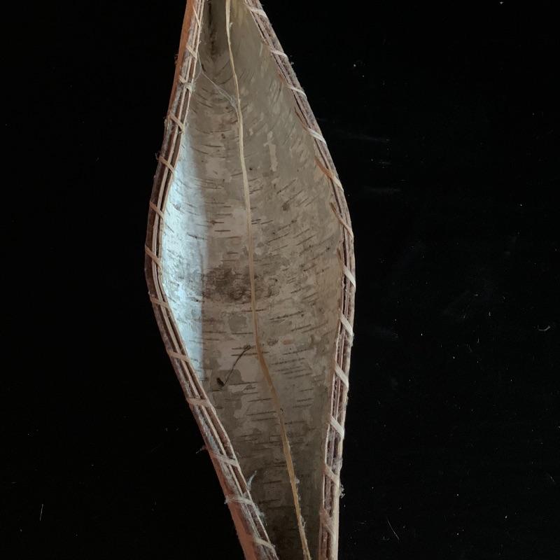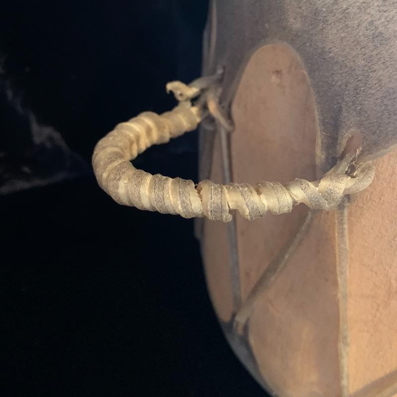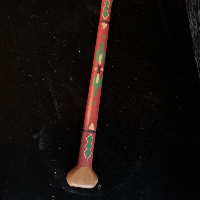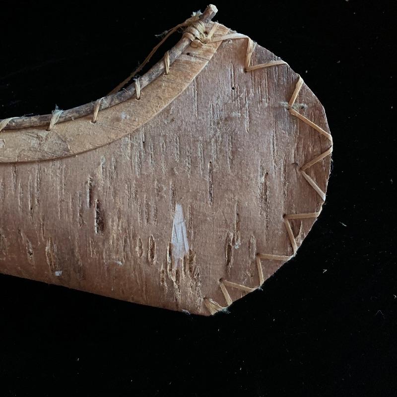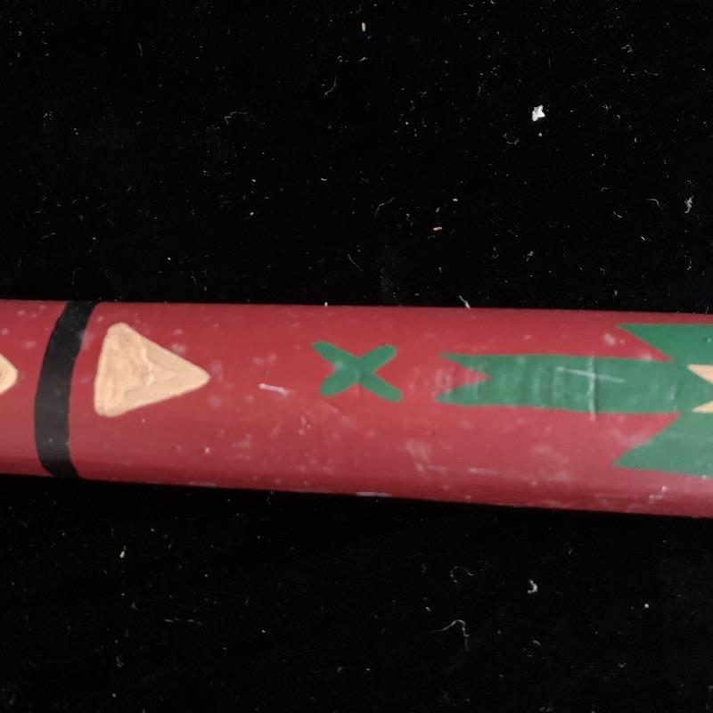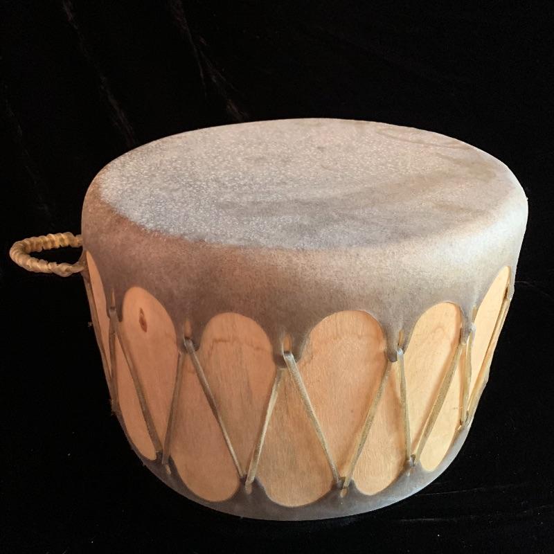 This lot includes one wooden drum, three wooden canoes, and a wooden paddle. The drum is made of soft wood and hide and has a matching drum stick made of similar material. It has a chunk missing from the back (see pictures). The drum measures about 10in x 13in. The three canoes appear to be made of bark. The largest canoe measures about 22in x 6.5in. The lot also includes a painted wooden paddle that measures about 36in long. Local pick up only.