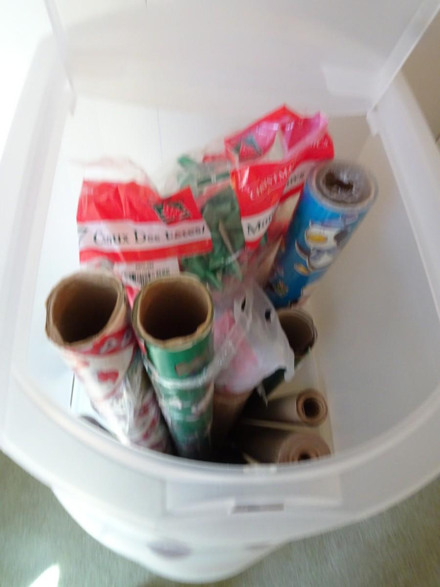 LOT 560. GIFT WRAP STORAGE AND SOME GIFT WRAP