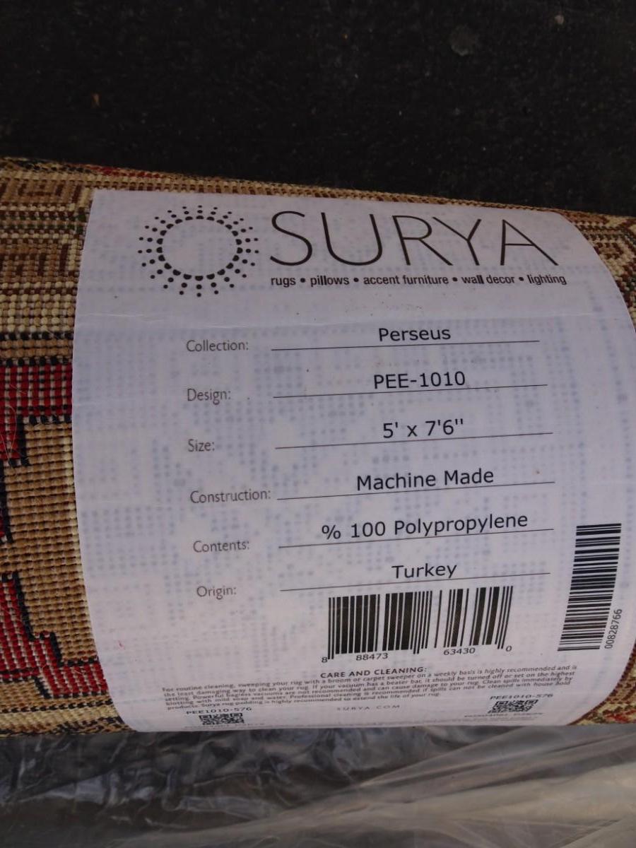 LOT 560. SURYA 5' X 7'6" AREA RUG