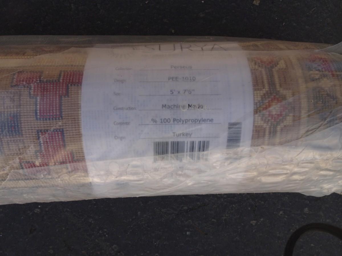 5' X 7'6" AREA RUG. MACHINE MADE RUG NEVER USED WAS IN ORIGINAL PACKAGING