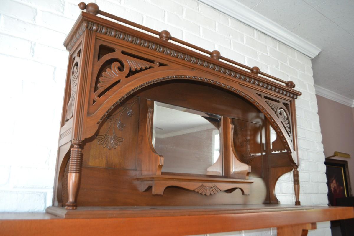 ANTIQUE VICTORIAN MANTEL SHELF 45" WIDE, 26" TALL