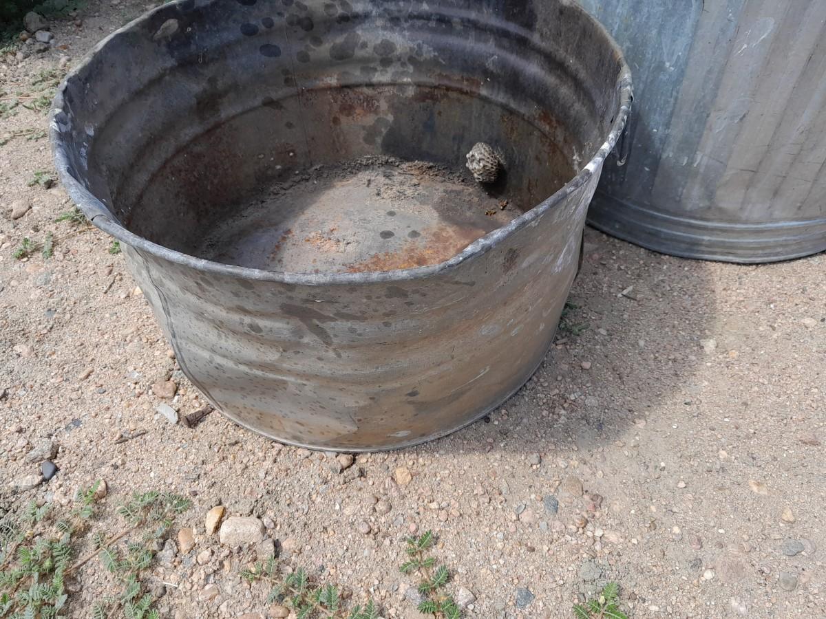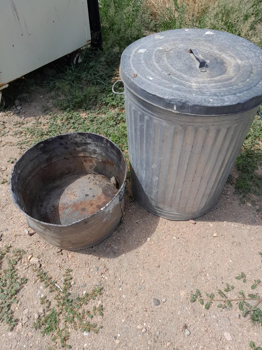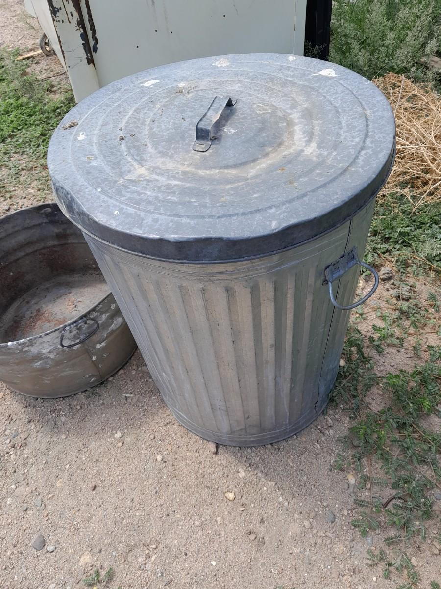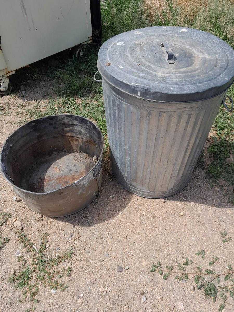 GALVENIZED TRASH CAN WITH LID AND WASH TUB