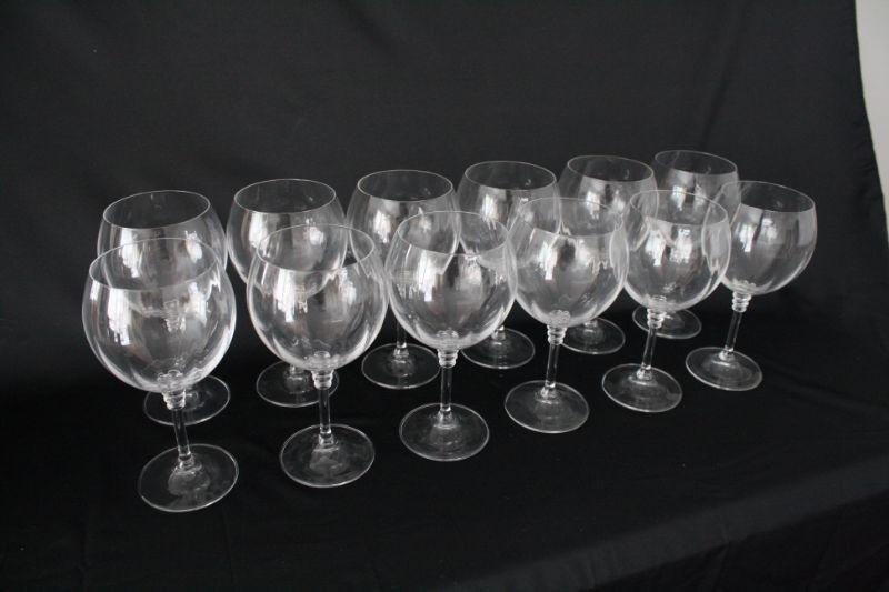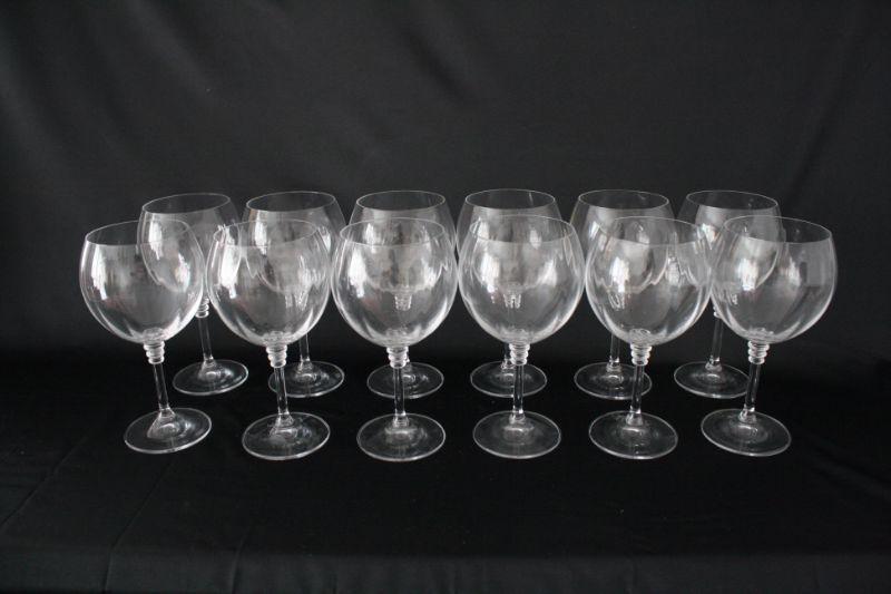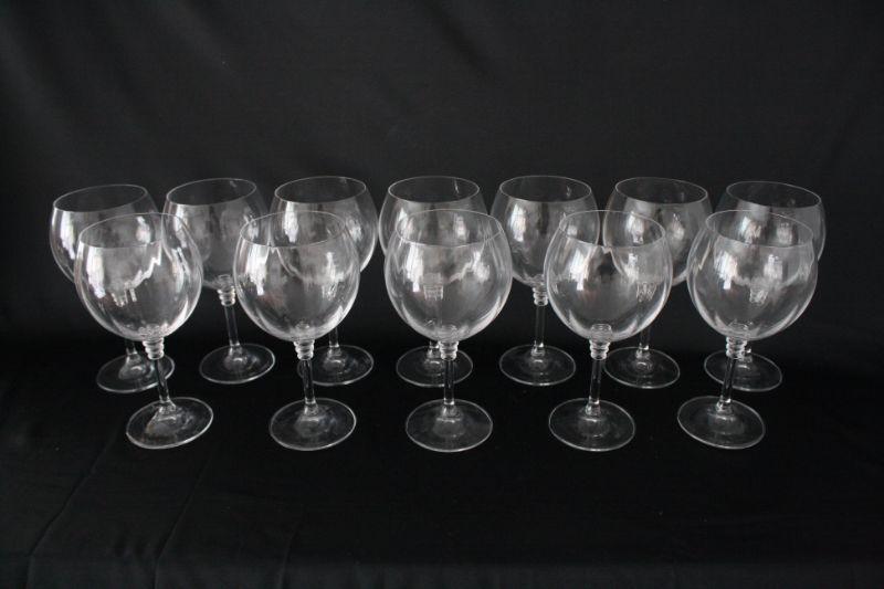 Clear Cut Red Wine Glasses Set - Set of twelve red wine or sherry glasses with cut glass design base. Each glass is 7.5 inches tall. In good condition.