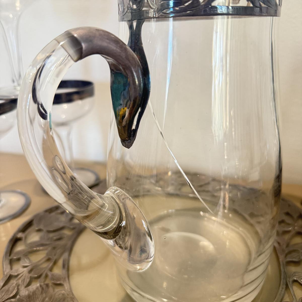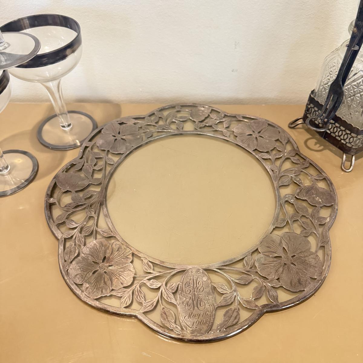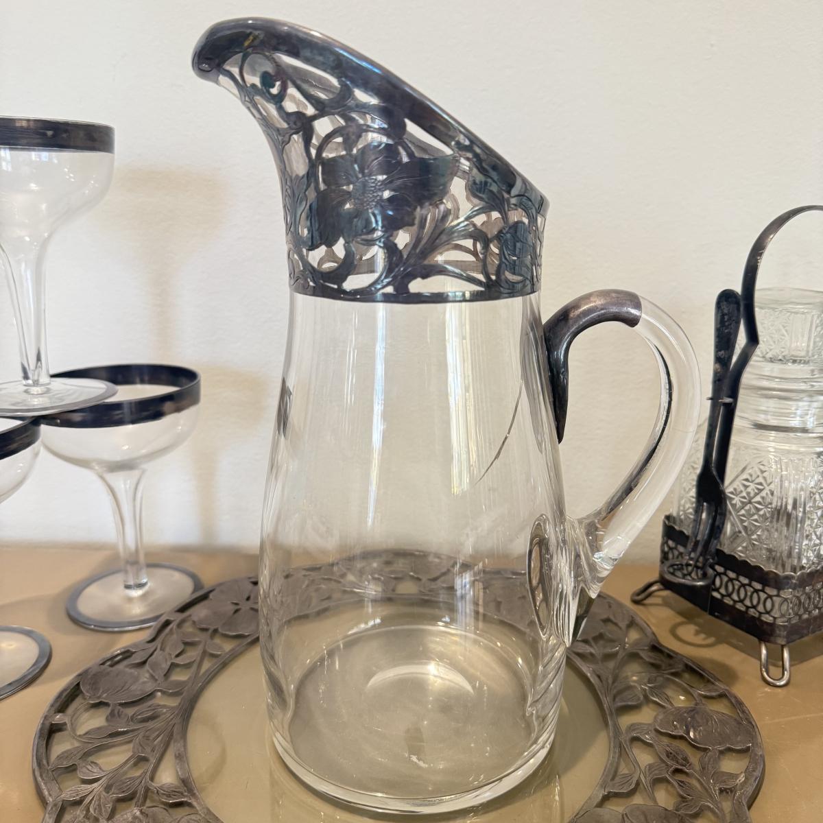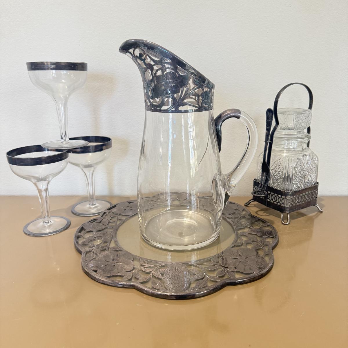 LOT 560F: Antique Glass Tray w/ Matching Pitcher & More
