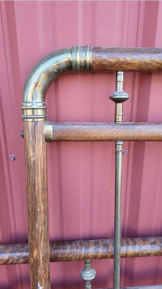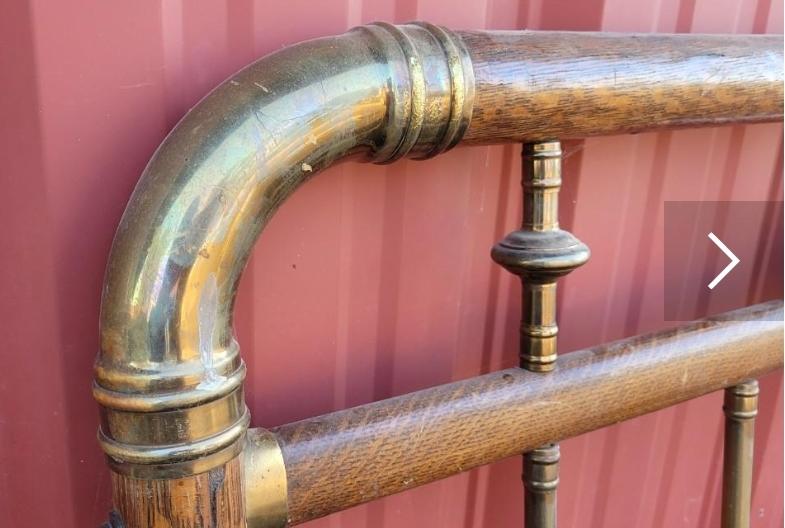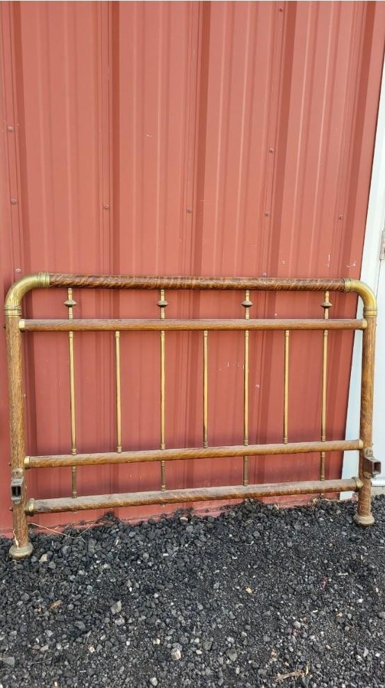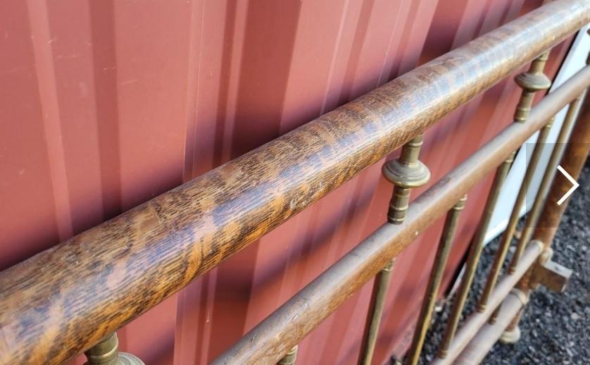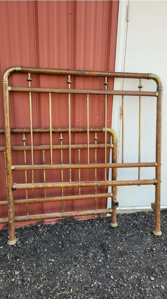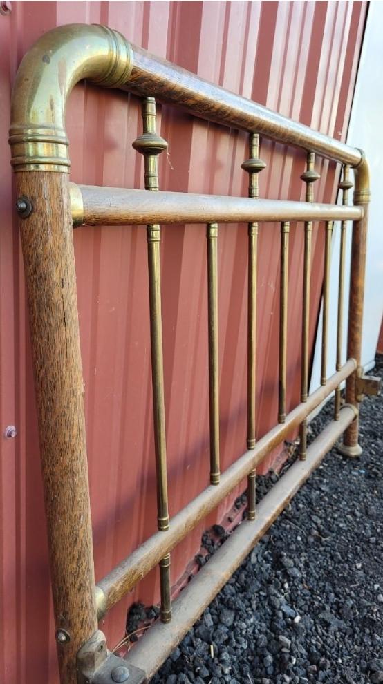 Lot 561: Antique Brass Bed with Wood Veneer