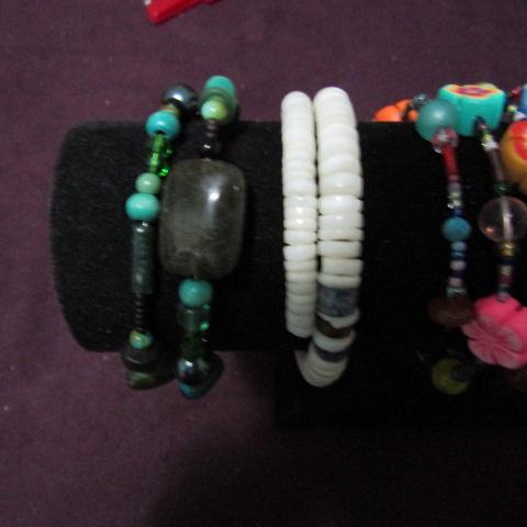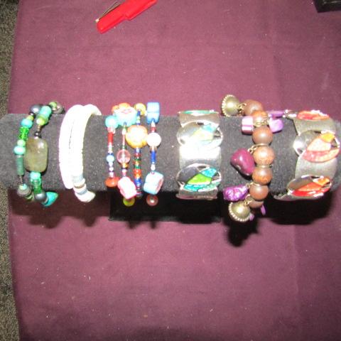6 BRACELETS ALL WITH ELASTIC LIKE BAND