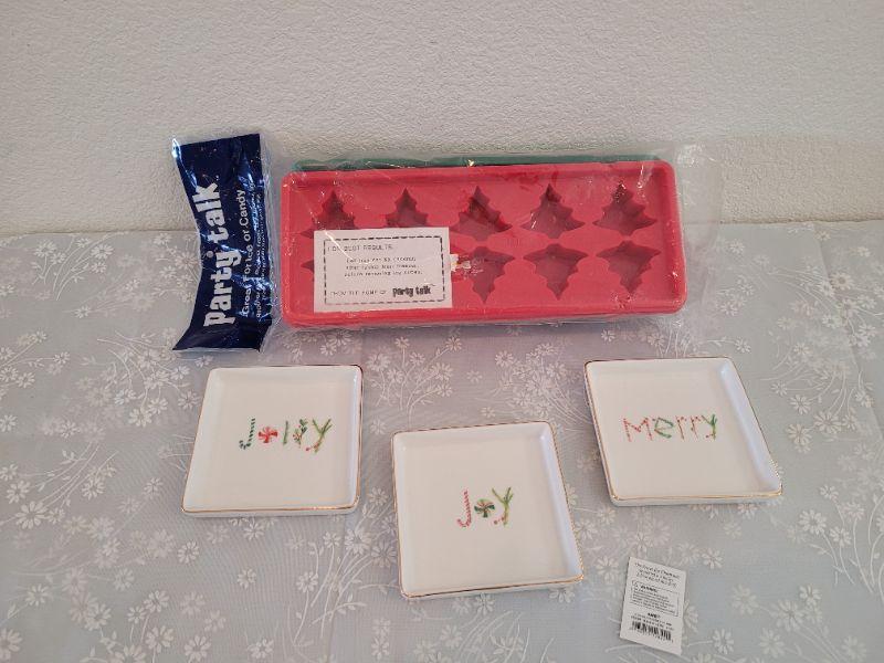 Lot 395: New Hallmark Christmas Plates and Candy or Ice Molds