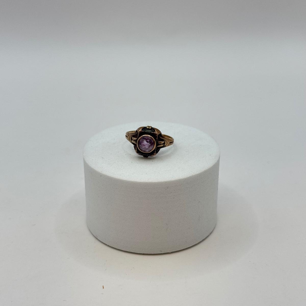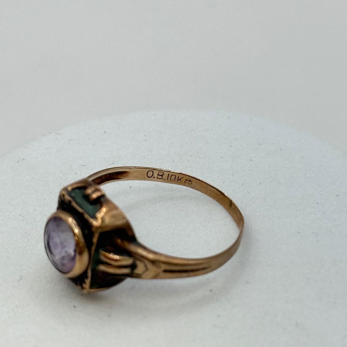 LOT 561J: Antique 10k Gold O.B. Facet Amethyst Ring Size 5.5 (1.2g)