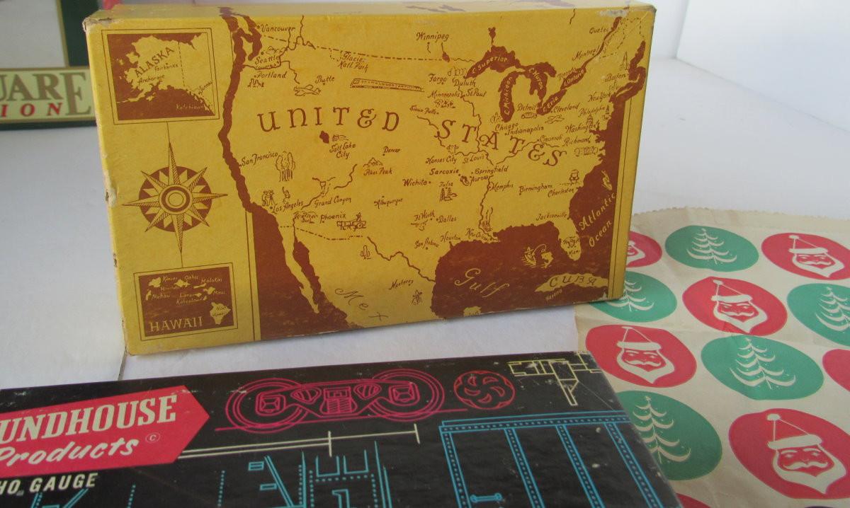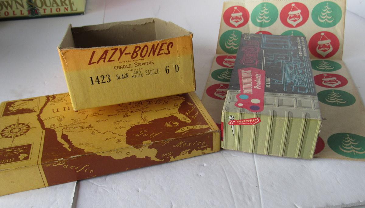 Train box from Roundhouse Products, kids shoe box from Lazy-Bones, bag from Huber Bros, Fond du Lac. Shipping available at shipping cost plus $5 per box handling fee. All sales final, no refunds. See our terms for details.