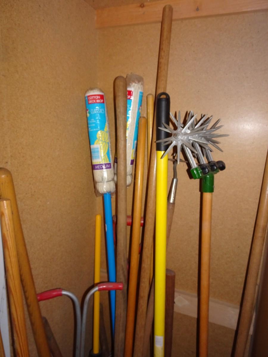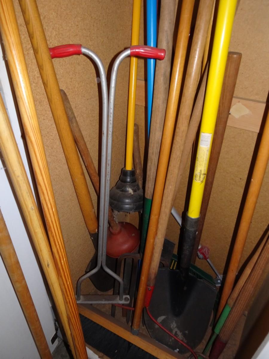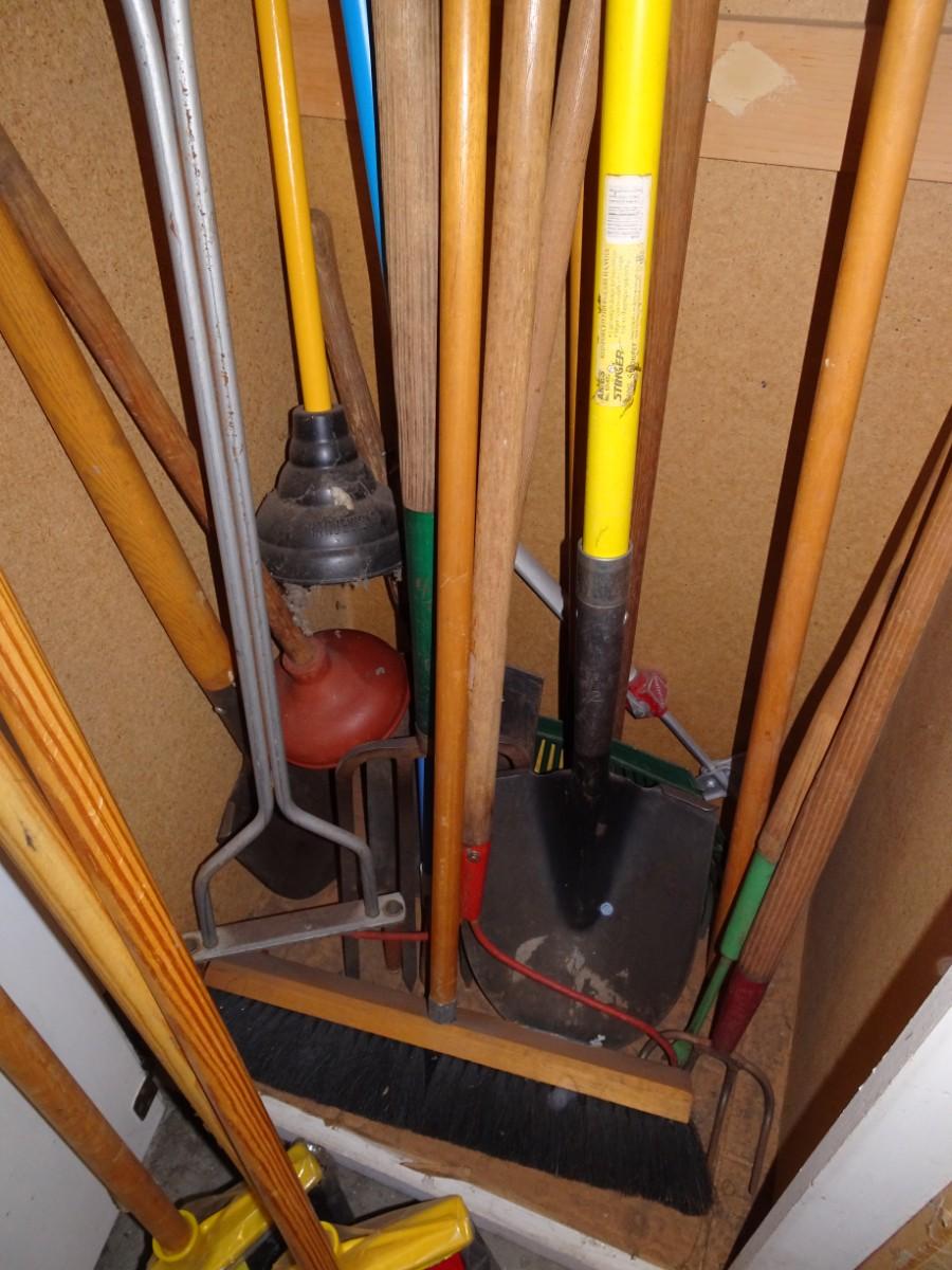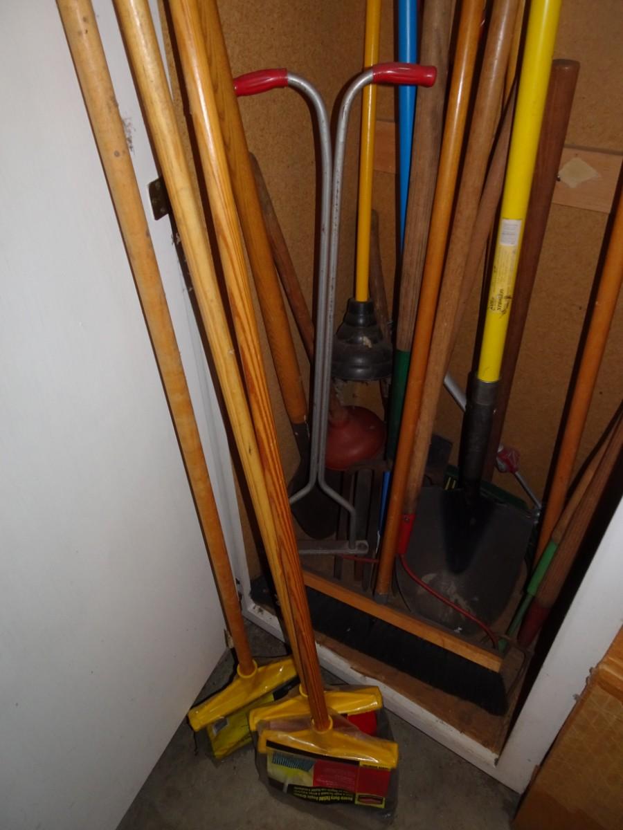 LOT 563. YARD TOOLS AND PUSH BROOM