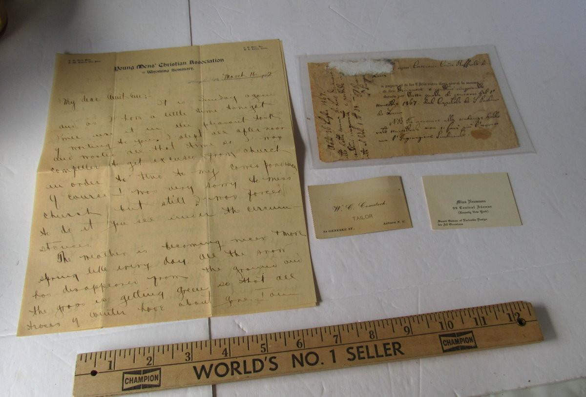 Well used but they are very old. 1867 Note/Certificate, 1902 Letter. Shipping is available on this lot with actual shipping cost and additional $5 and handling fee per box. All sales final, no returns. See our terms for details.