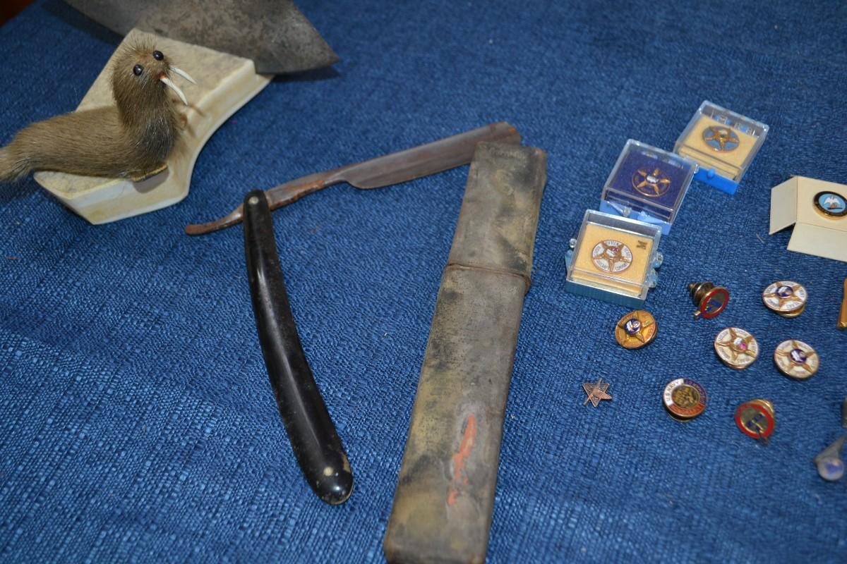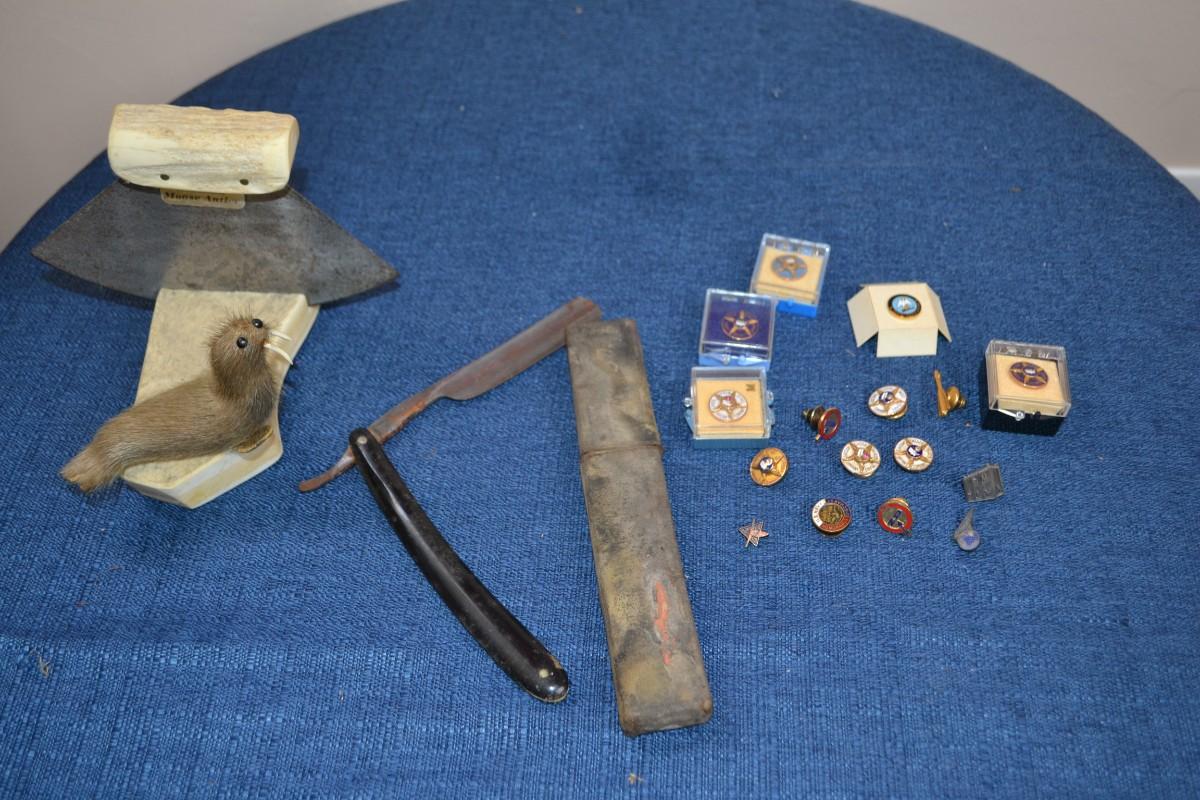 LOT 564   PINS, ANTIQUE RAZOR AND HOME DECOR