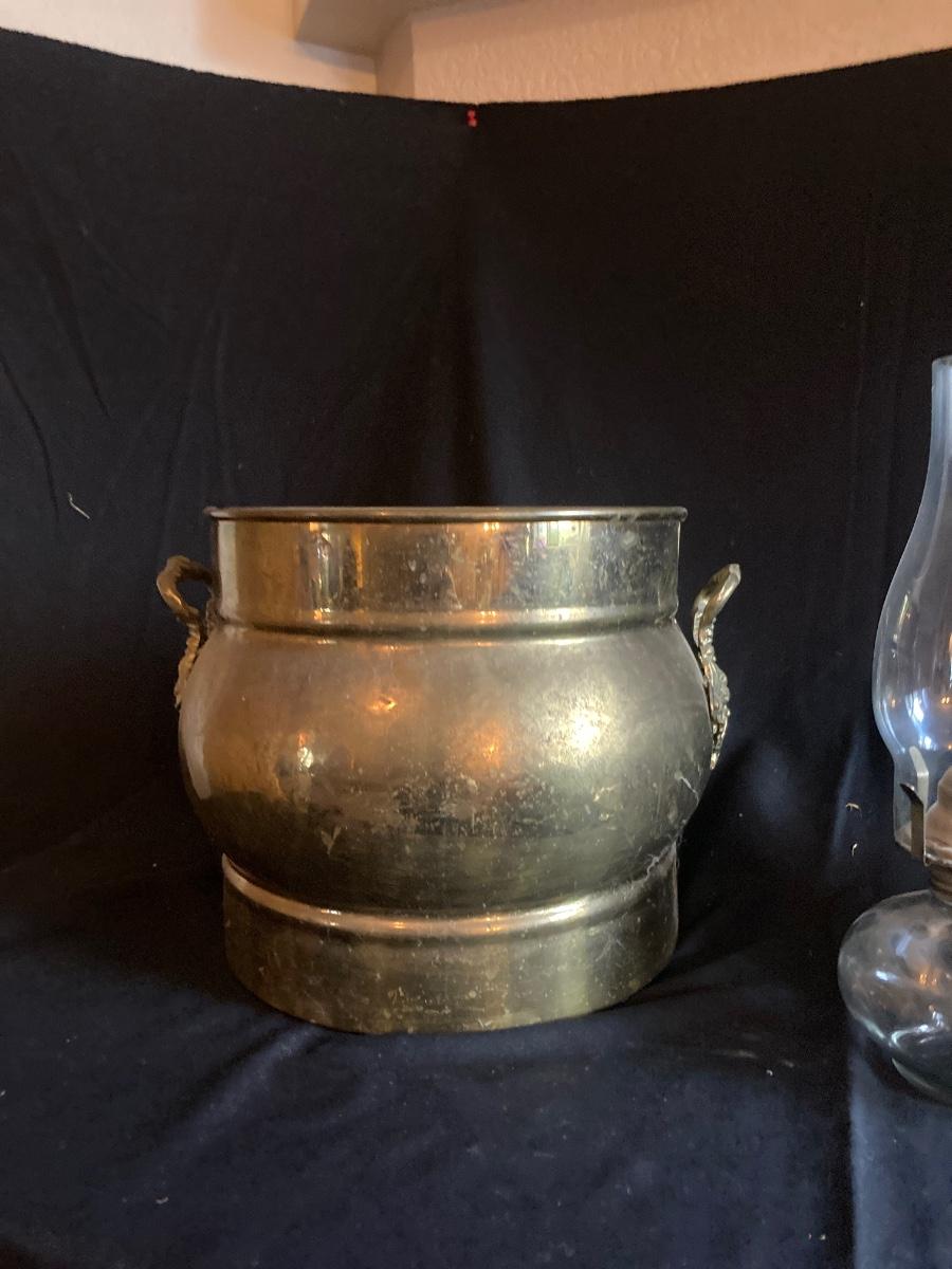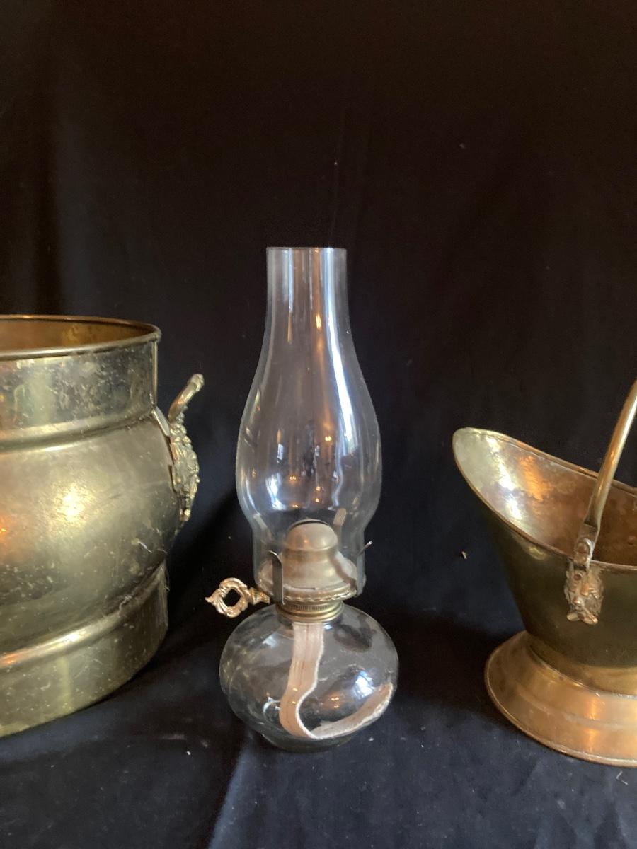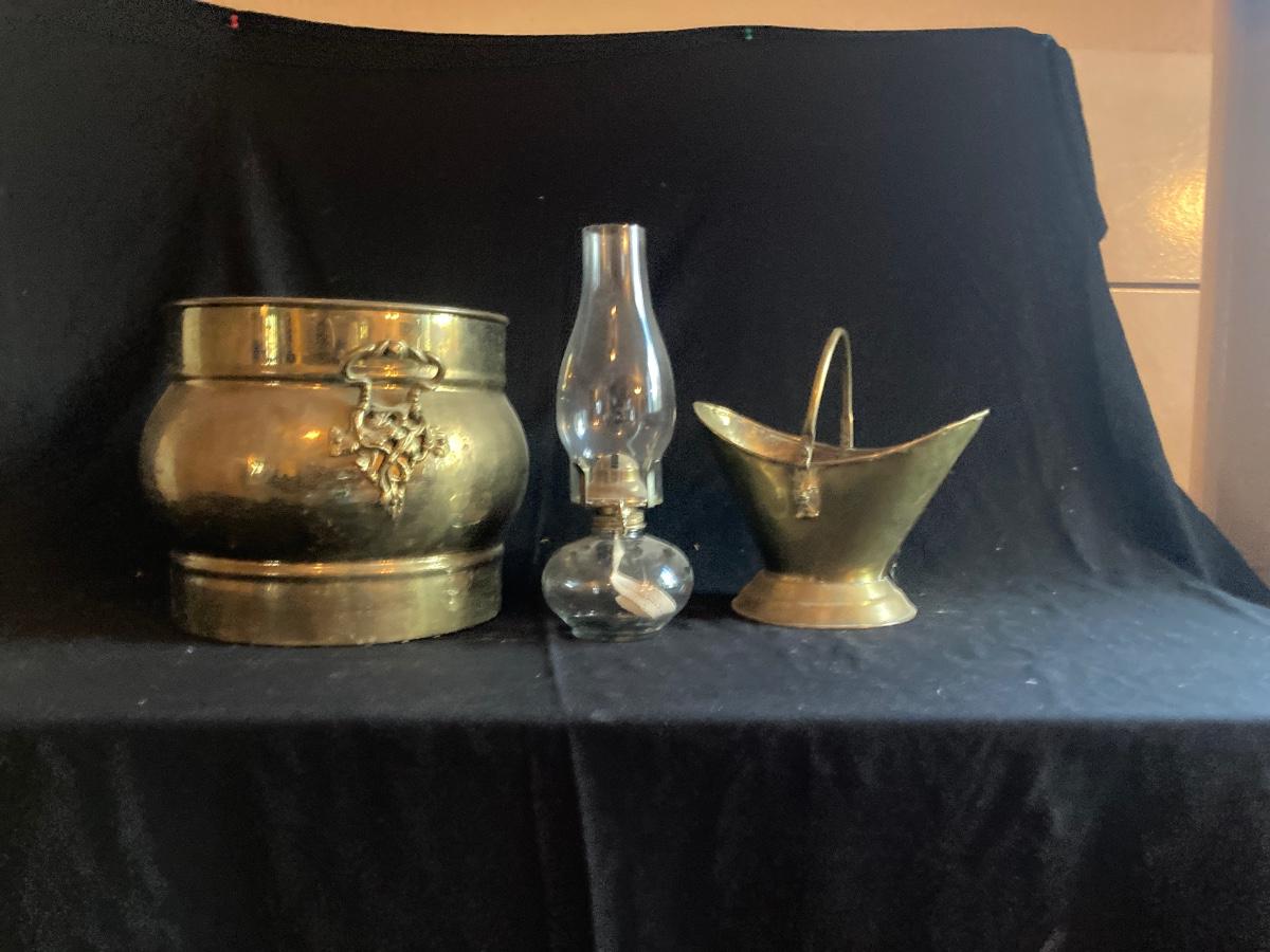 BRASS BASKET AND LARGE BRASS PLANTER/BUCKET AND AN OIL LAMP TOO!
