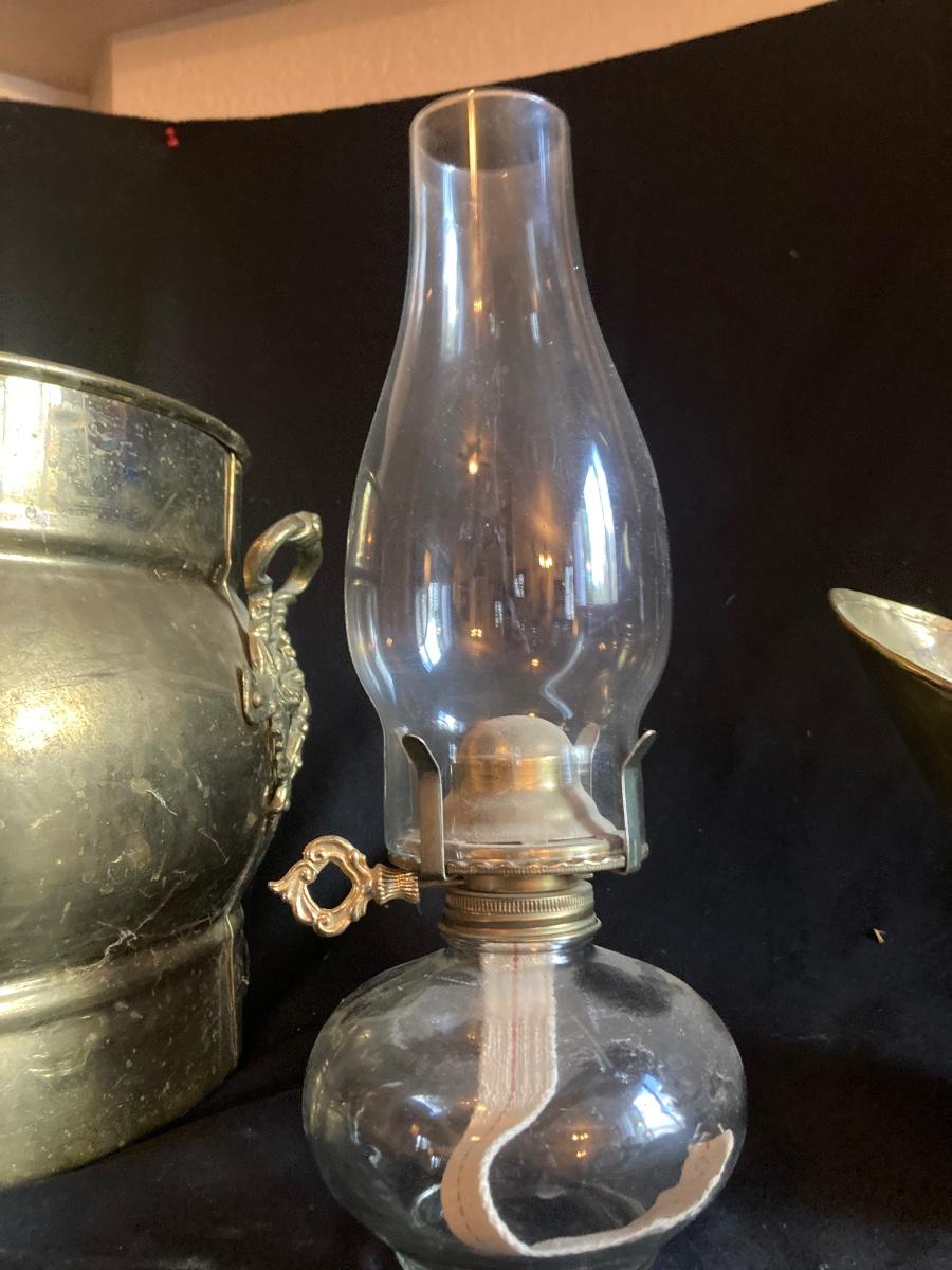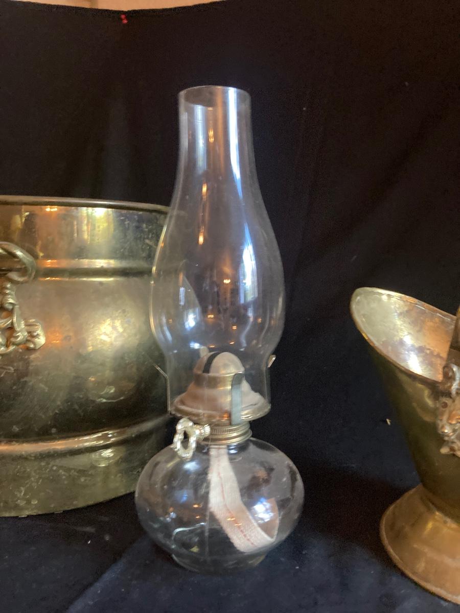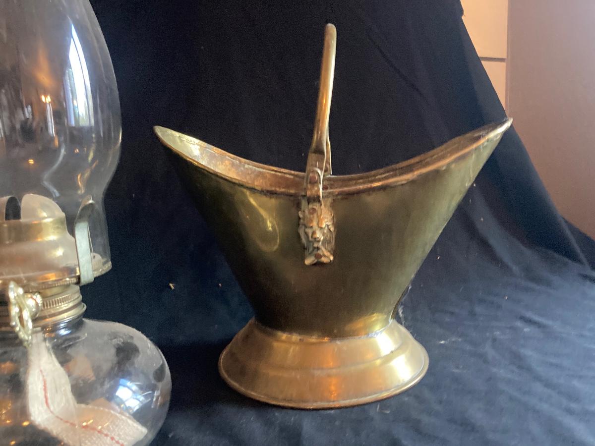 BRASS BASKET AND LARGE BRASS PLANTER/BUCKET AND AN OIL LAMP TOO!