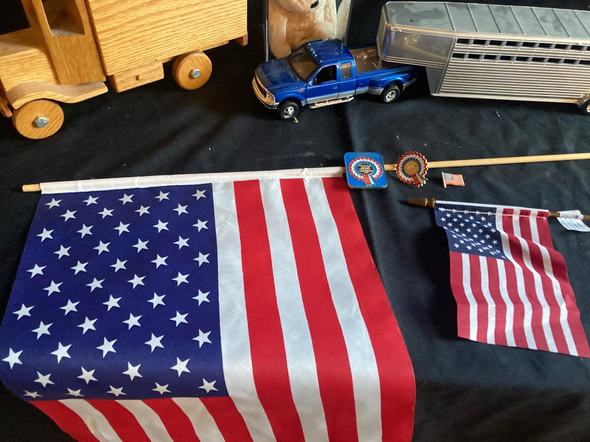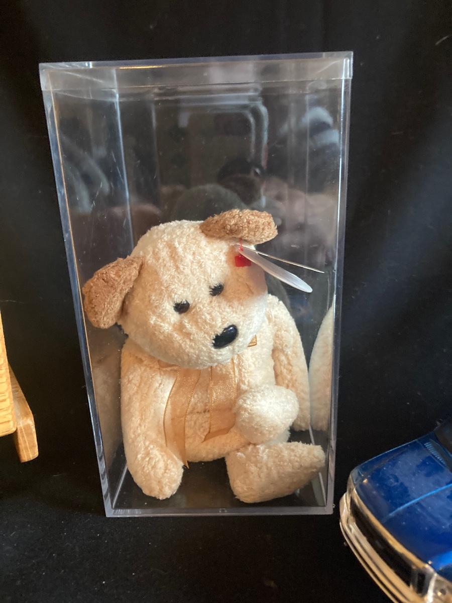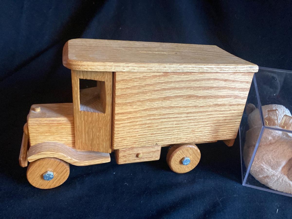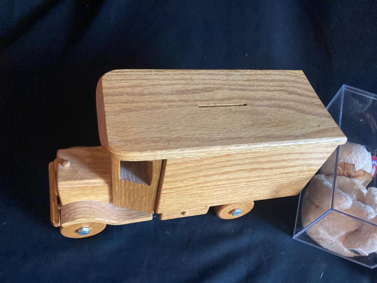HORSE TRAILER AND DODGE PICK-UP, ALL WOOD BANK TRUCK, BEANIE BABY BEAR AND MORE