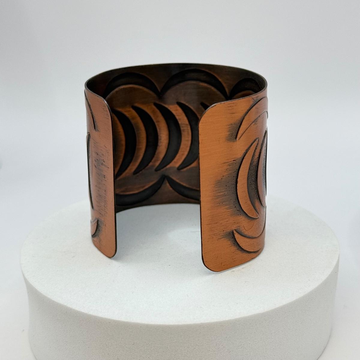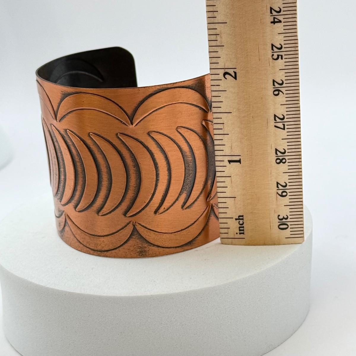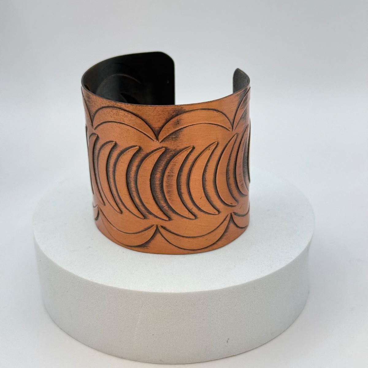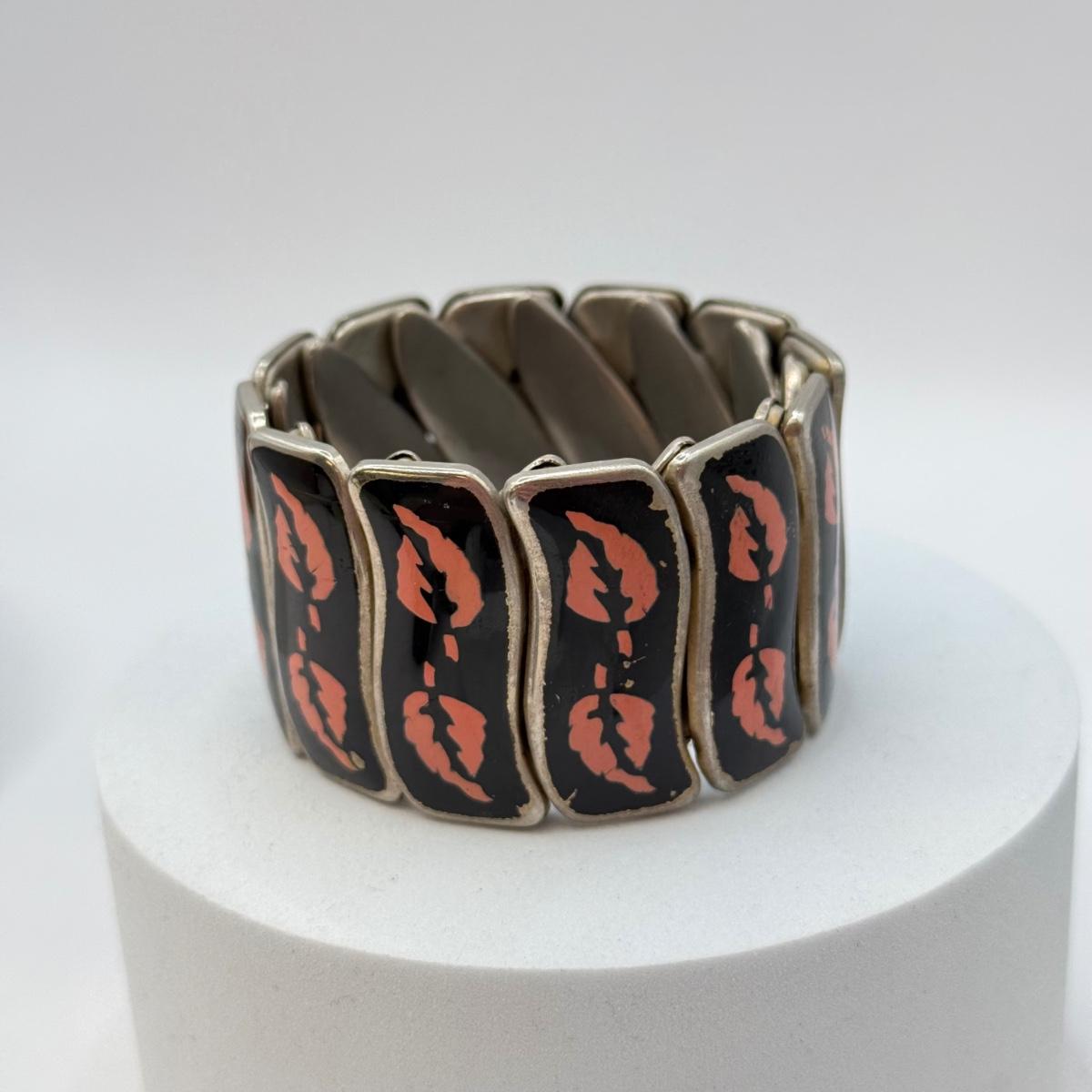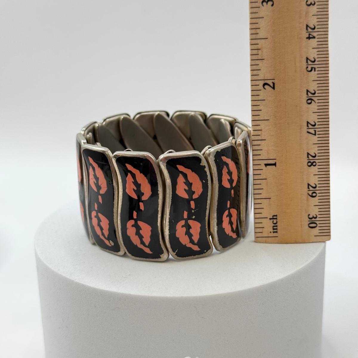 LOT 567J: Vintage Enamel Accordion Expandable Bracelet, Vintage Copper Cuff & 6.5” Goldtone Gemstone Scarab Bracelet w/ Safety Chain