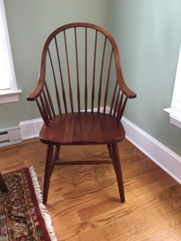 The four chairs are by Ethan Allen and there are two arm chairs 39.5” tall x 24” wide x set depth is 19.25” and seat height is 18” The two seating chairs measure