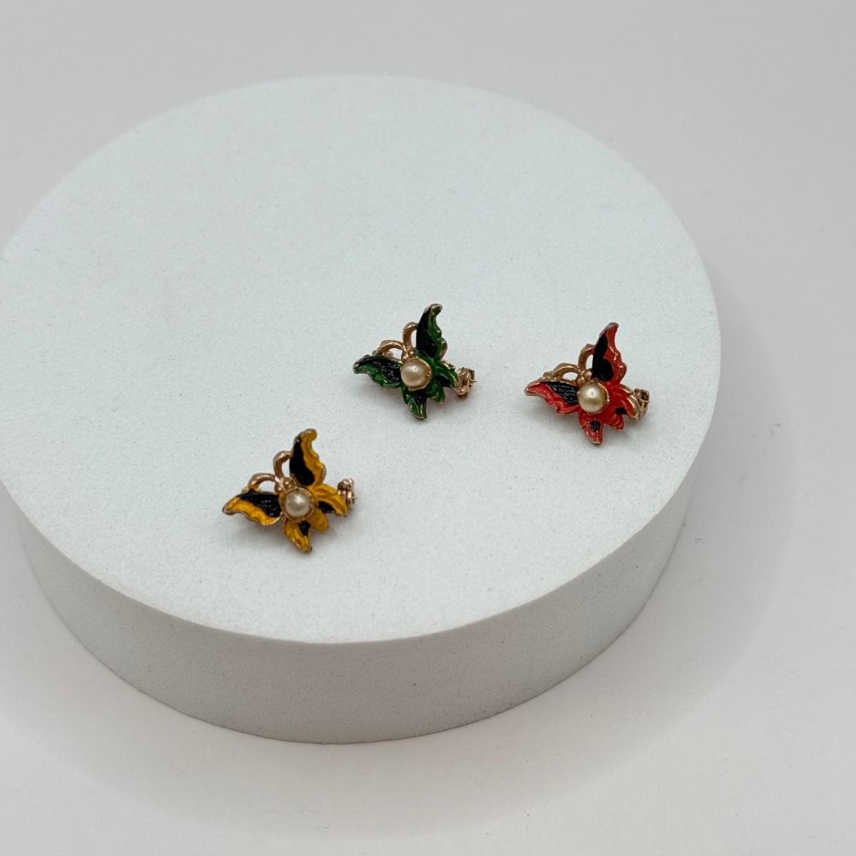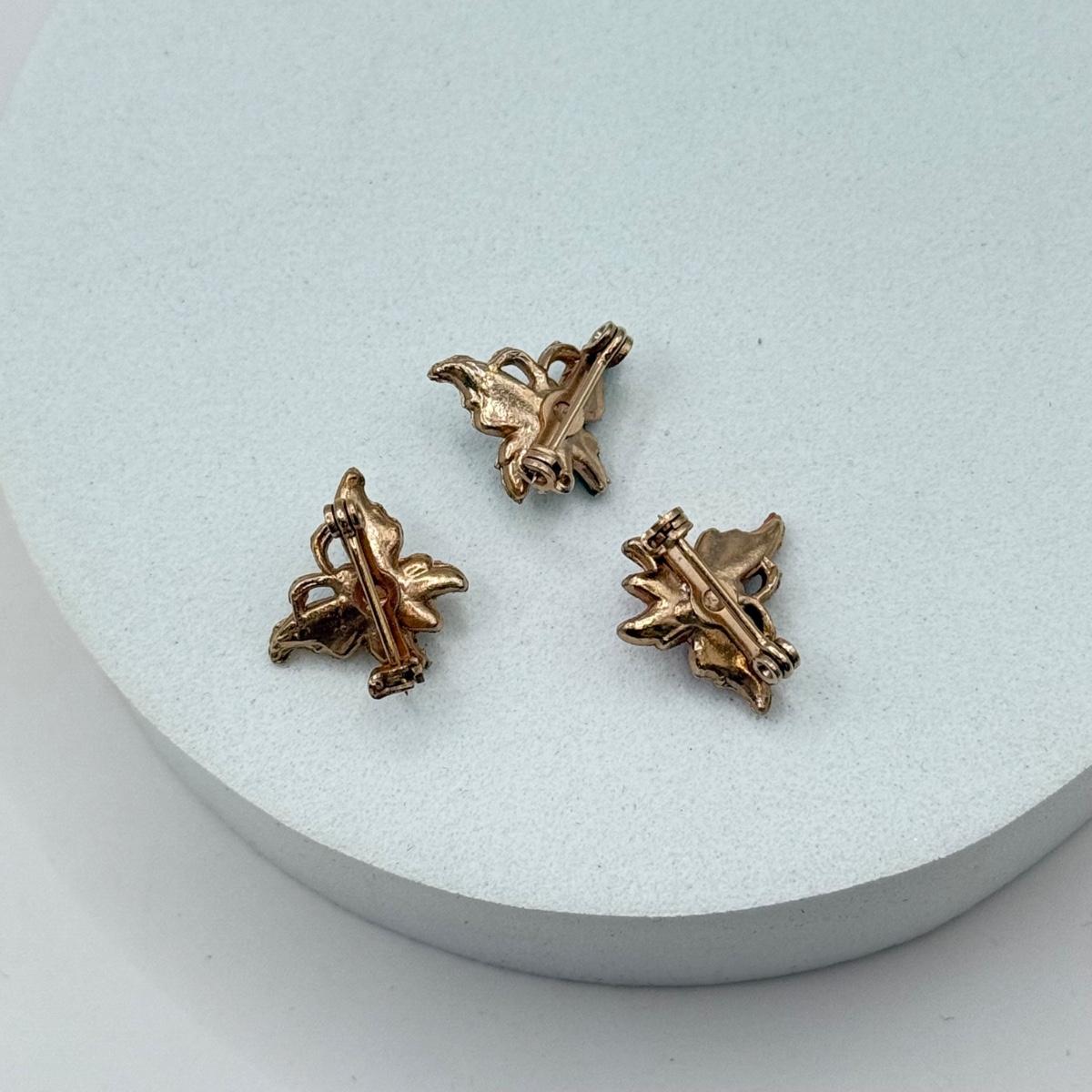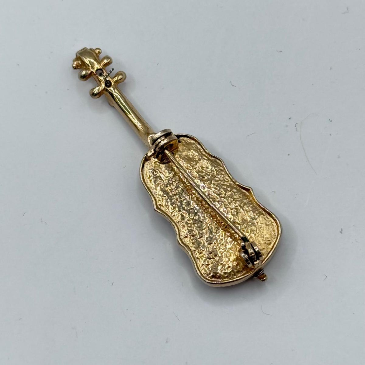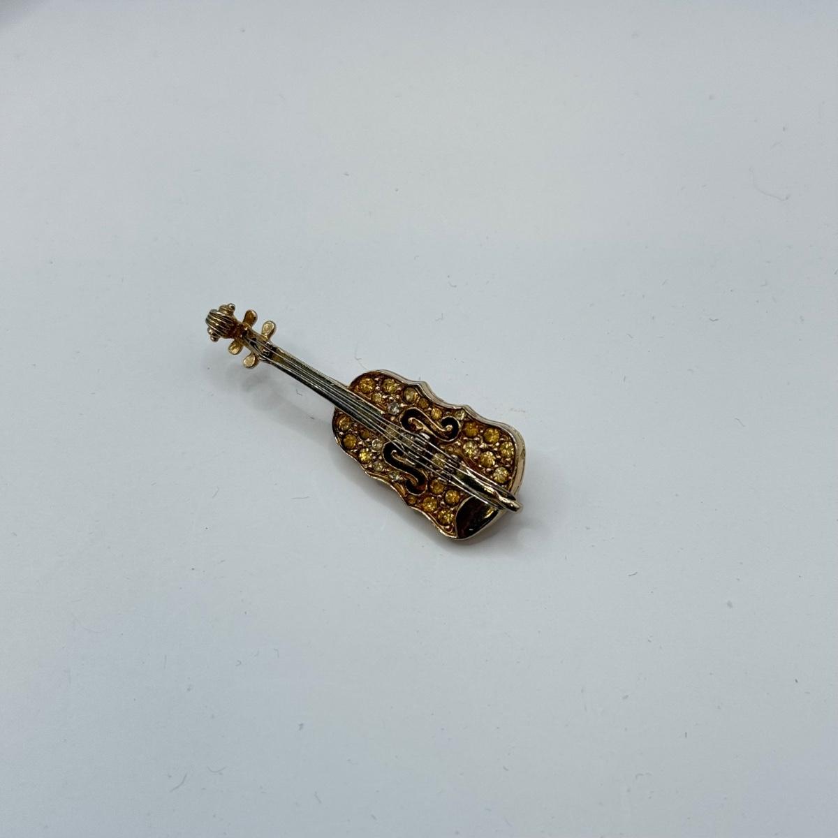 LOT 569J: 3 Mini Goldtone Enamel & Faux Pearl Butterfly Scatter Pins, Vintage Goldtone Pave Crystal Violin Brooch & Circle Leaf Goldtone Faux Pearl Brooch