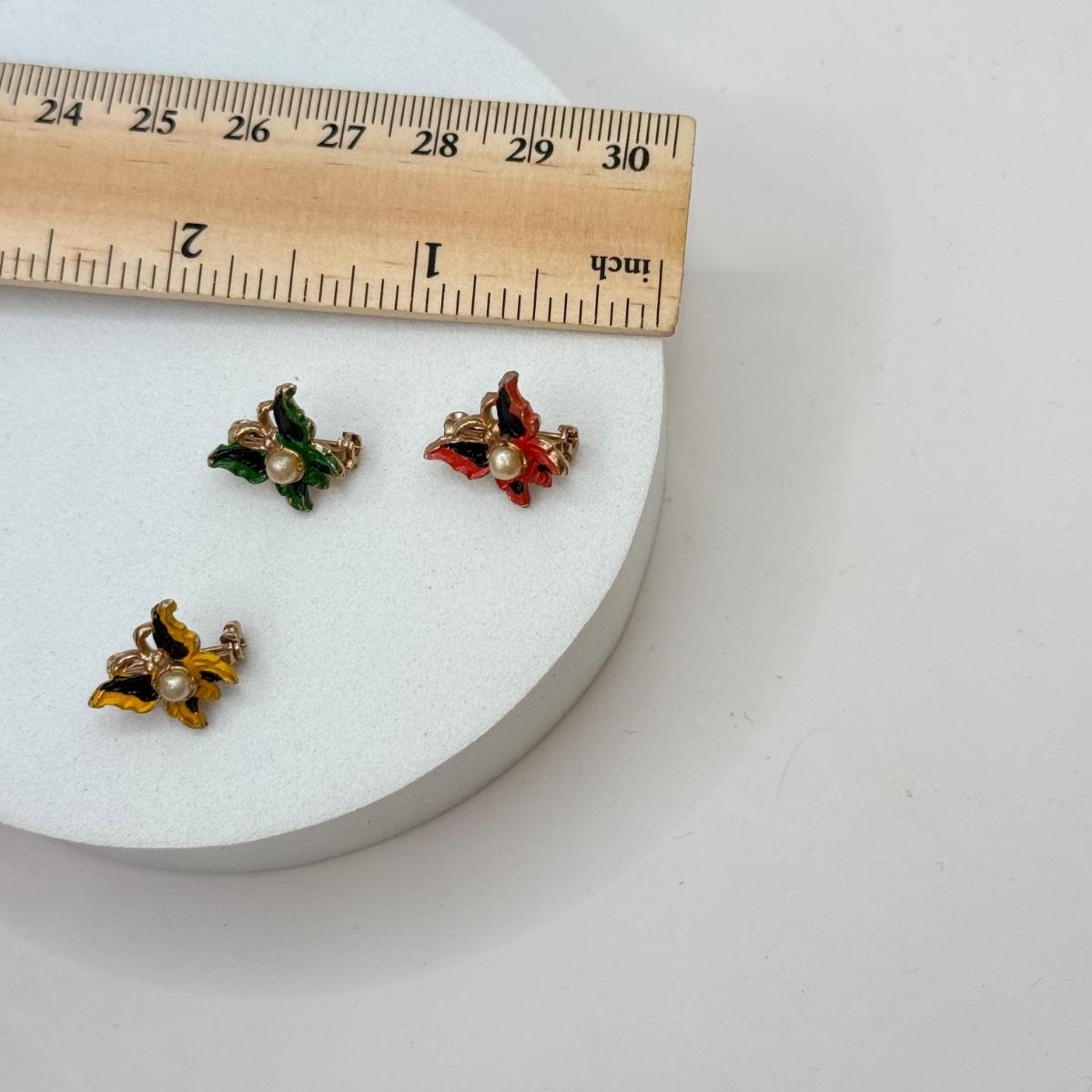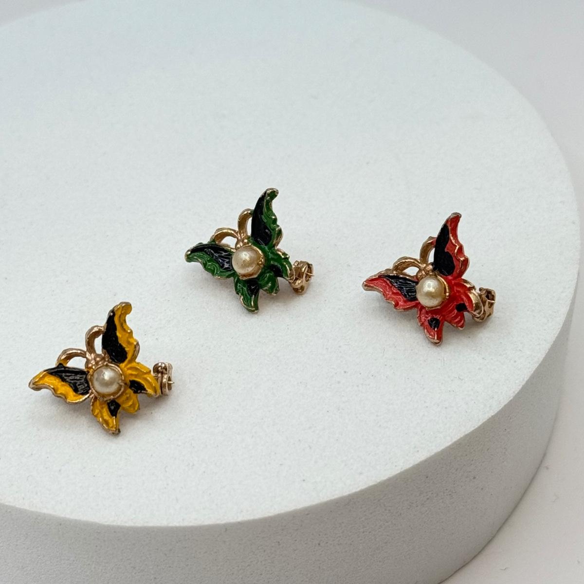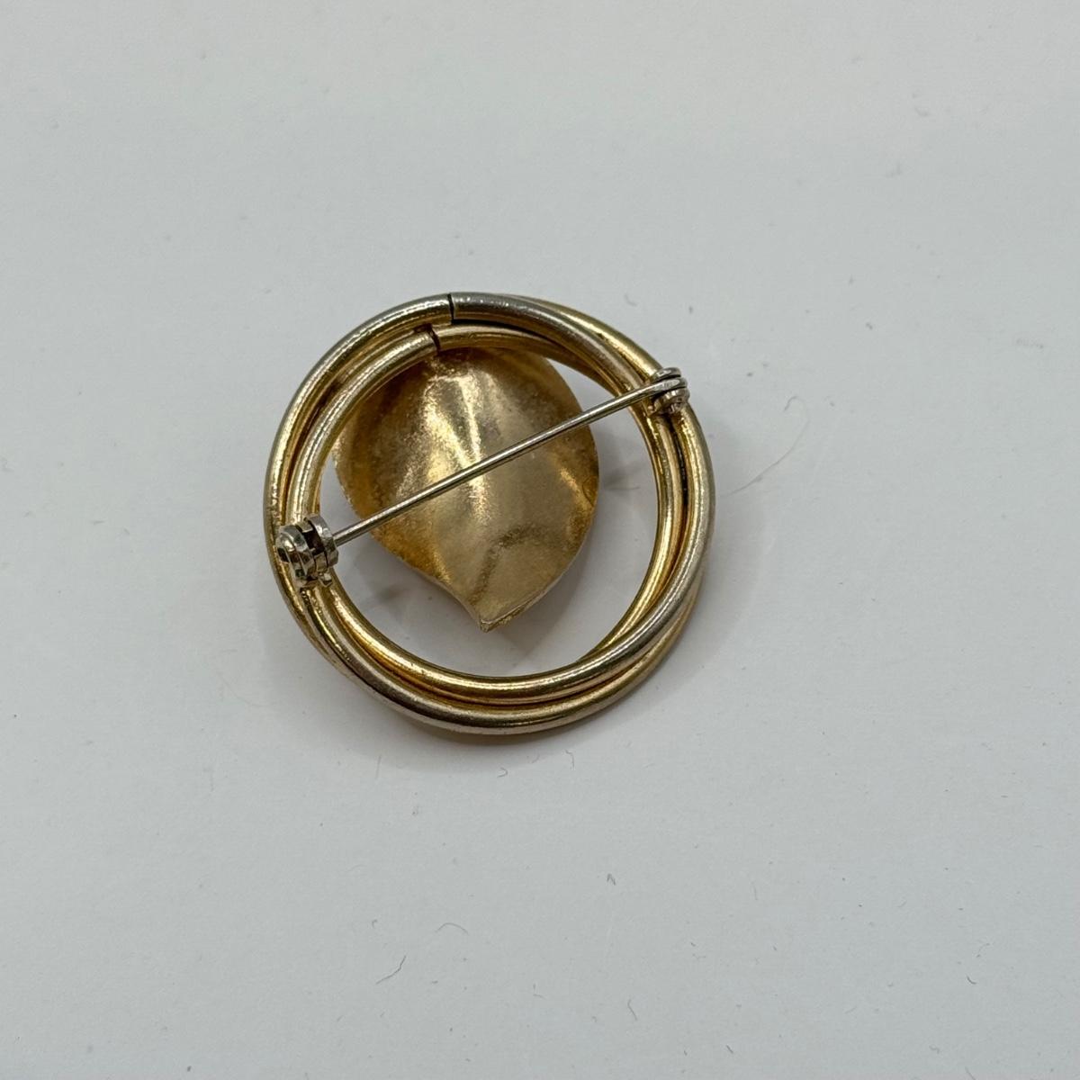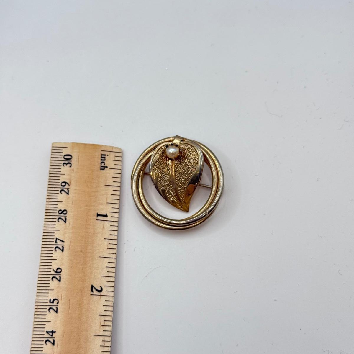 LOT 569J: 3 Mini Goldtone Enamel & Faux Pearl Butterfly Scatter Pins, Vintage Goldtone Pave Crystal Violin Brooch & Circle Leaf Goldtone Faux Pearl Brooch