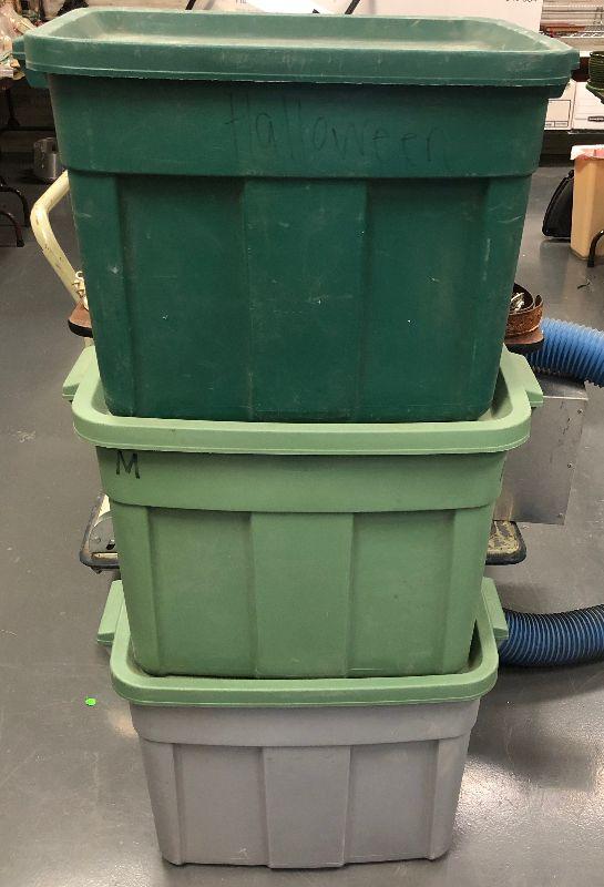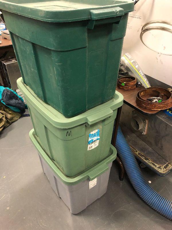 Lot #57 3 Large Rubbermaid Storage 18 Gal with lid