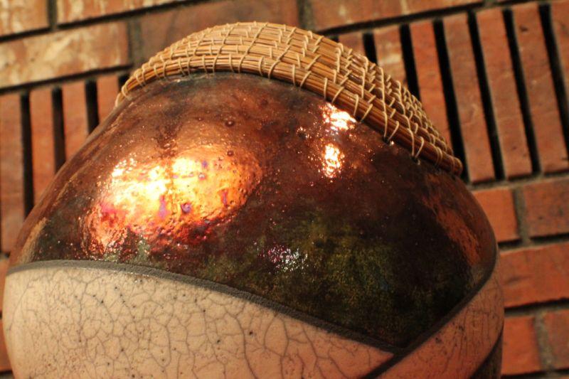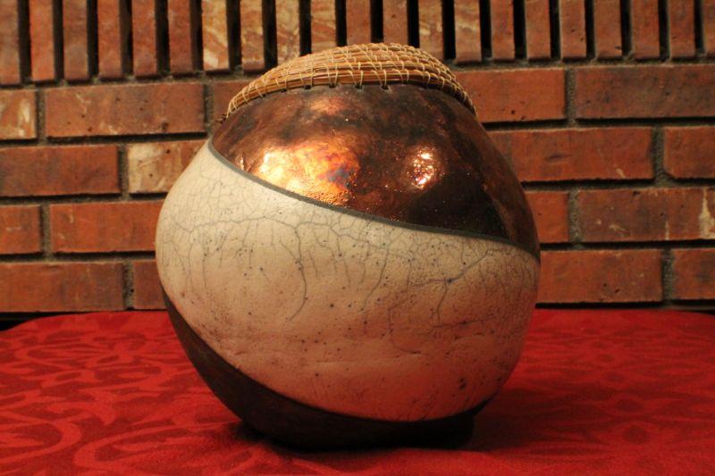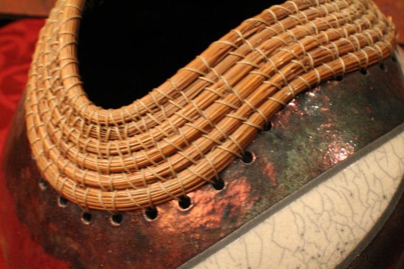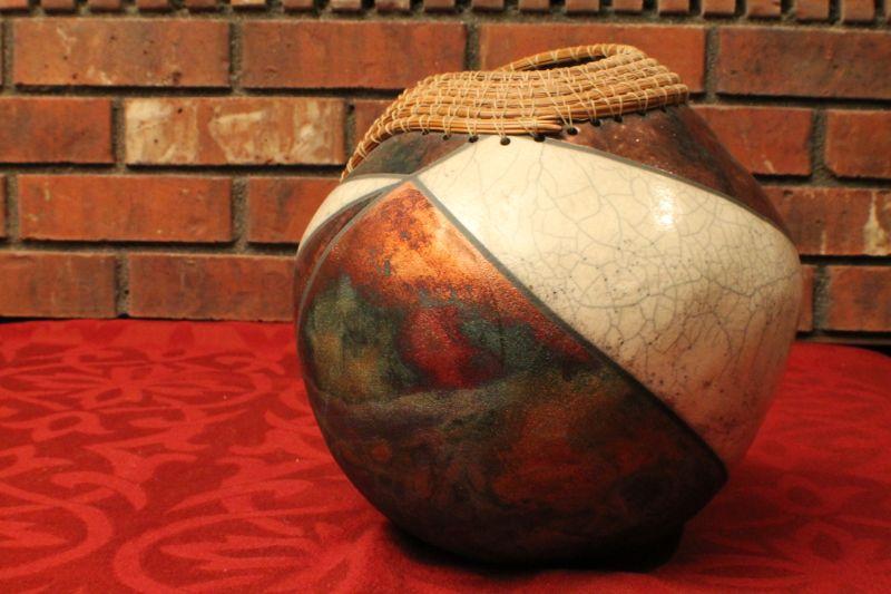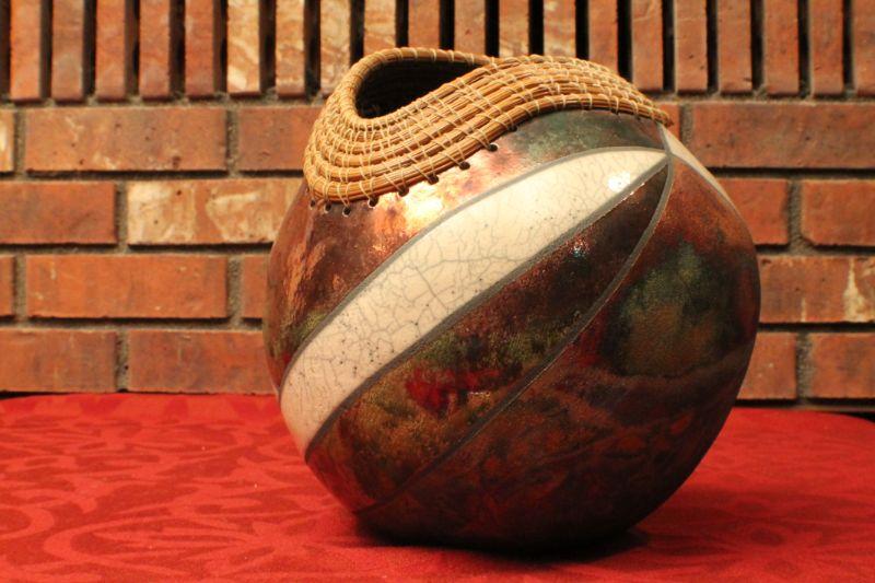 LOT #57: Joyce Shuman Pine Needle and Raku Mixed Medium RAKU Pottery