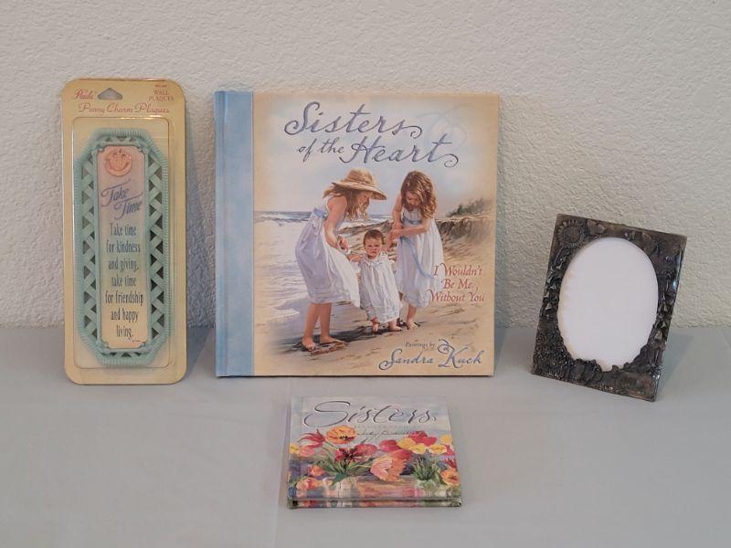Lot 57: Sisters Books, Picture Frame and Penny Charm Plaque