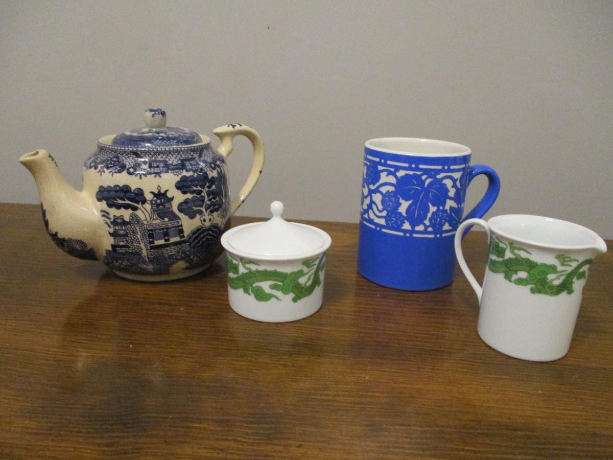 Japanese Asian Art Blue Willow Teapot - Bona Porcelain - Villeroy Boch Mug