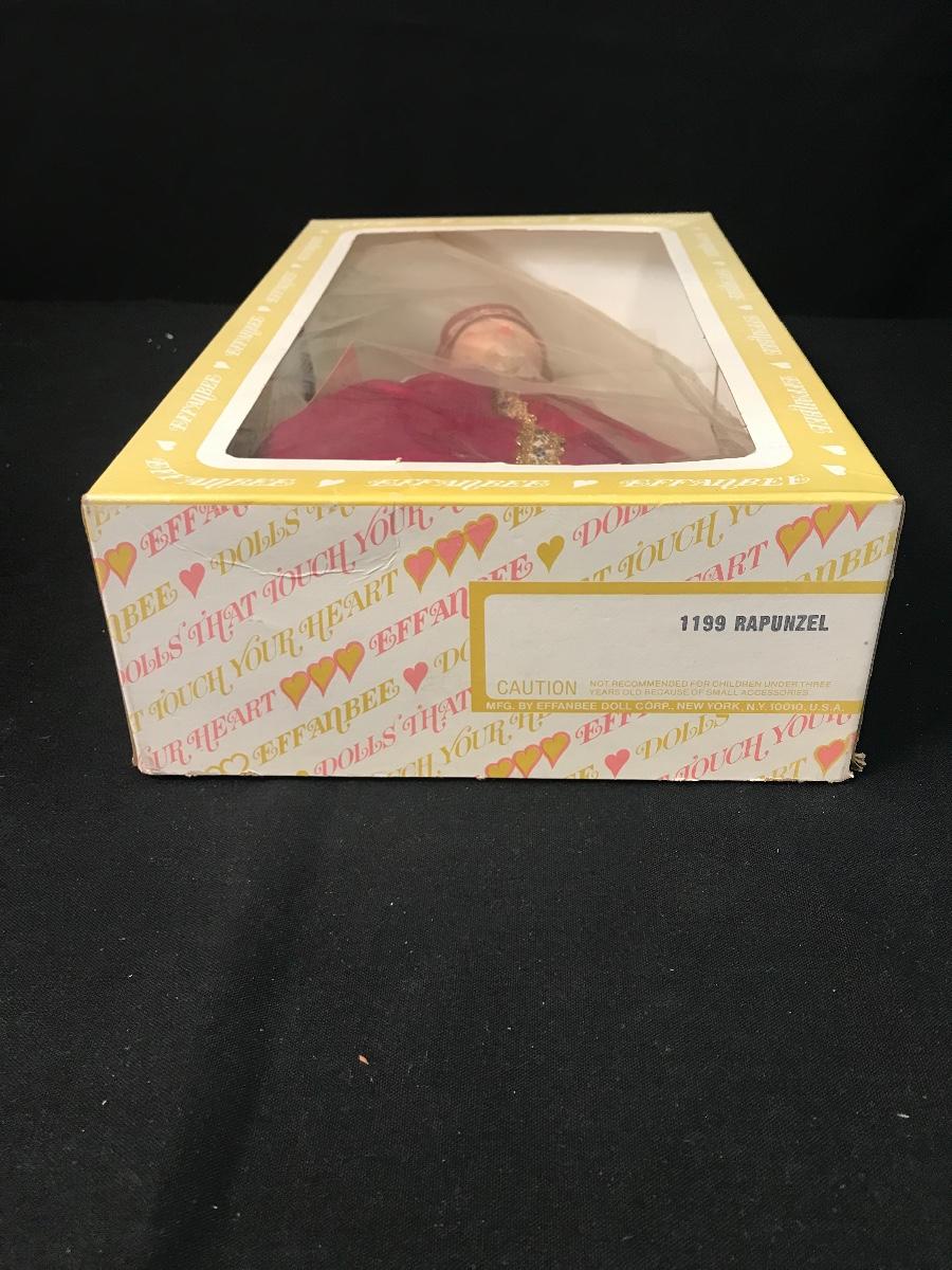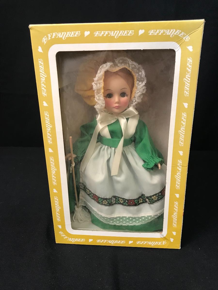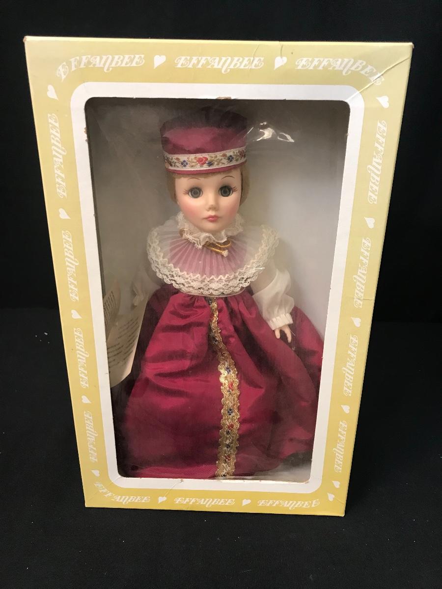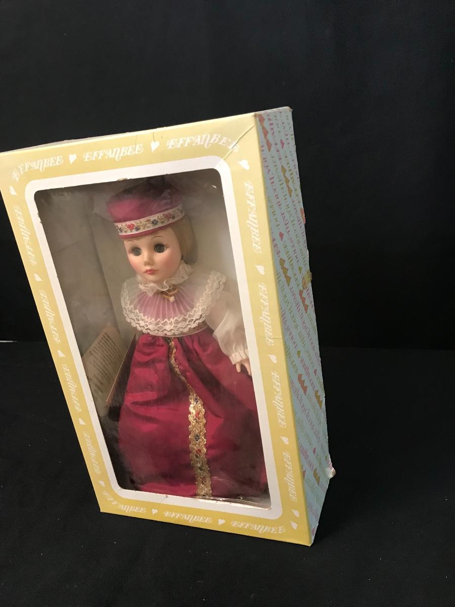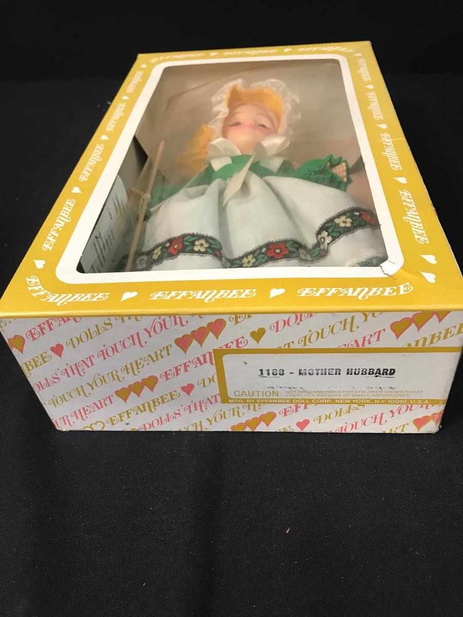 Three Effanbee Vintage Dolls - Sugar Plum Fairy, Mother Hubbard & Rapunzel. Dolls are largely in like new condition, Sugar Plum Fairy has been disconnected from packaging and one shoe is not completely on foot. Mother Hubbard and Rapunzel are still attached to internal packaging. Boxes show shelf wear and plastic film is coming away from cardboard in some places. Please see all pictures as they are the best representation of the items. The pictures show condition, measurements if taken, and what is included in the lot. Due to the large amount that we photograph and the time frame, we are not always able to take measurements. All items unless noted, are pre-owned and have been used. If you purchased furniture, you must bring help. We do not allow one person to carry large furniture out on their own. Bring help, tools and a truck for the safety of our client’s homes, and your personal safety. Company policy. Thank you.
