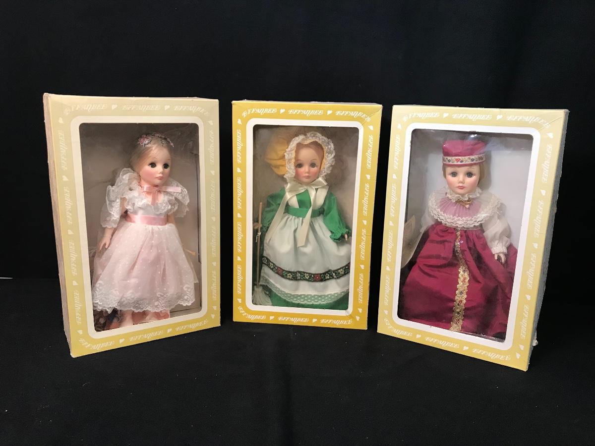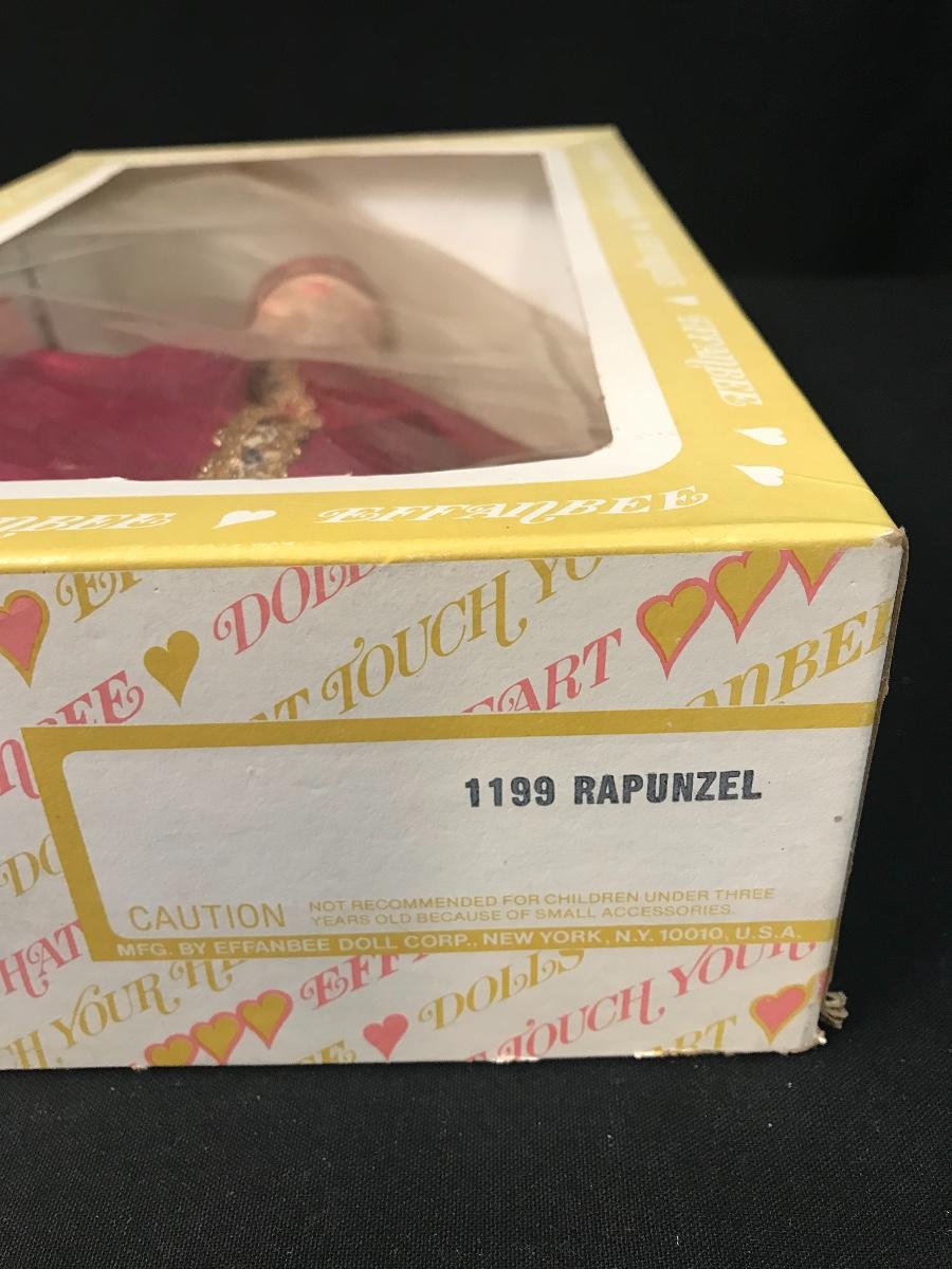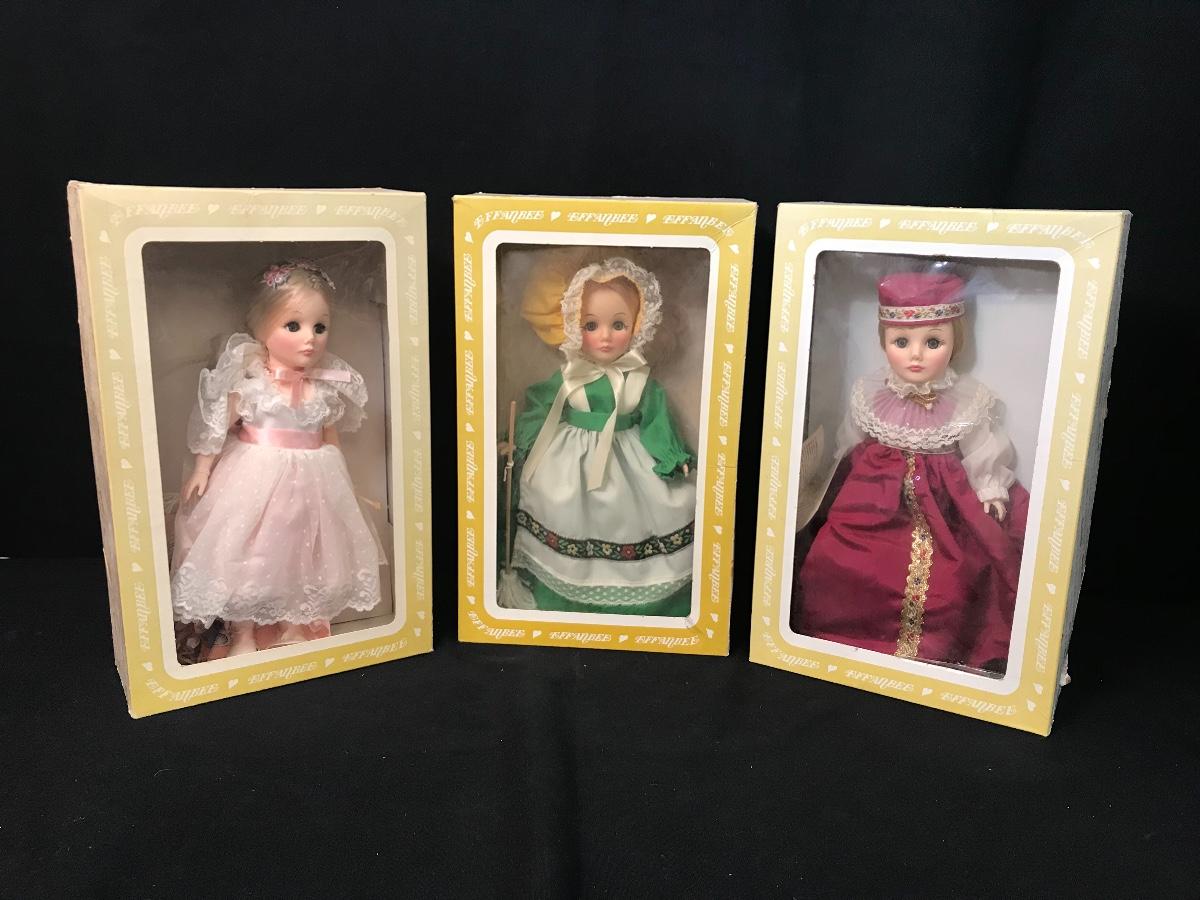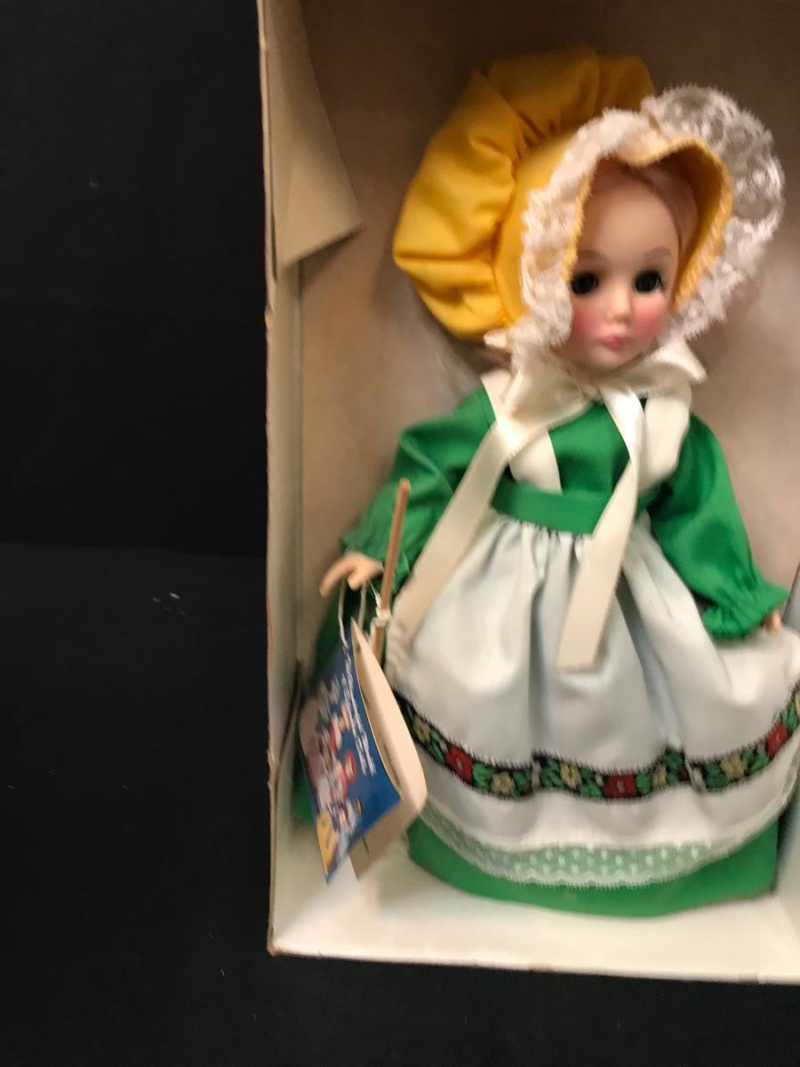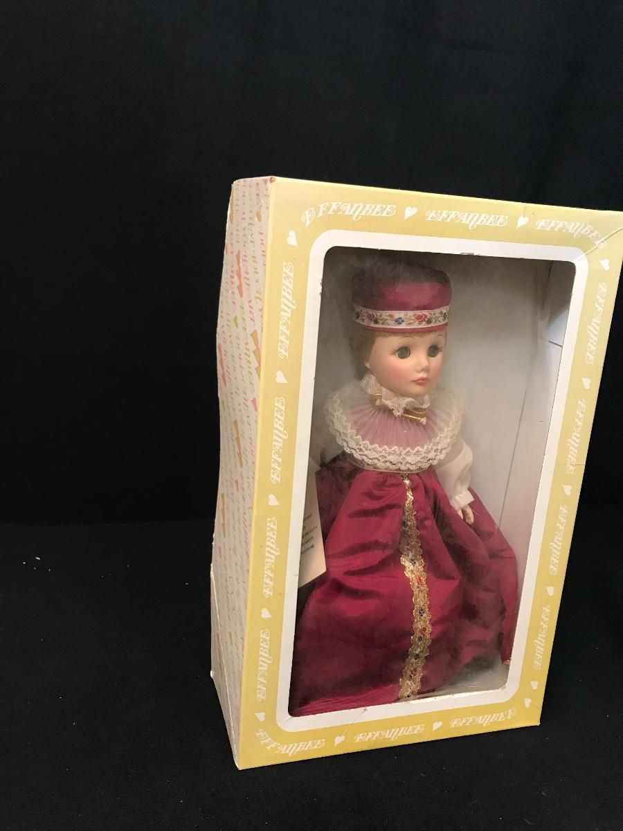 Three Effanbee Vintage Dolls - Sugar Plum Fairy, Mother Hubbard & Rapunzel. Dolls are largely in like new condition, Sugar Plum Fairy has been disconnected from packaging and one shoe is not completely on foot. Mother Hubbard and Rapunzel are still attached to internal packaging. Boxes show shelf wear and plastic film is coming away from cardboard in some places. Please see all pictures as they are the best representation of the items. The pictures show condition, measurements if taken, and what is included in the lot. Due to the large amount that we photograph and the time frame, we are not always able to take measurements. All items unless noted, are pre-owned and have been used. If you purchased furniture, you must bring help. We do not allow one person to carry large furniture out on their own. Bring help, tools and a truck for the safety of our client’s homes, and your personal safety. Company policy. Thank you.