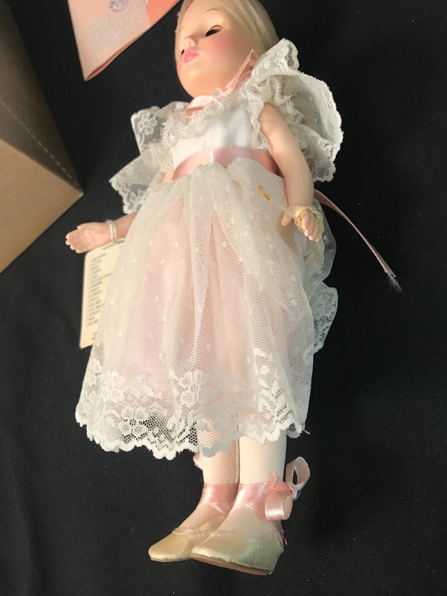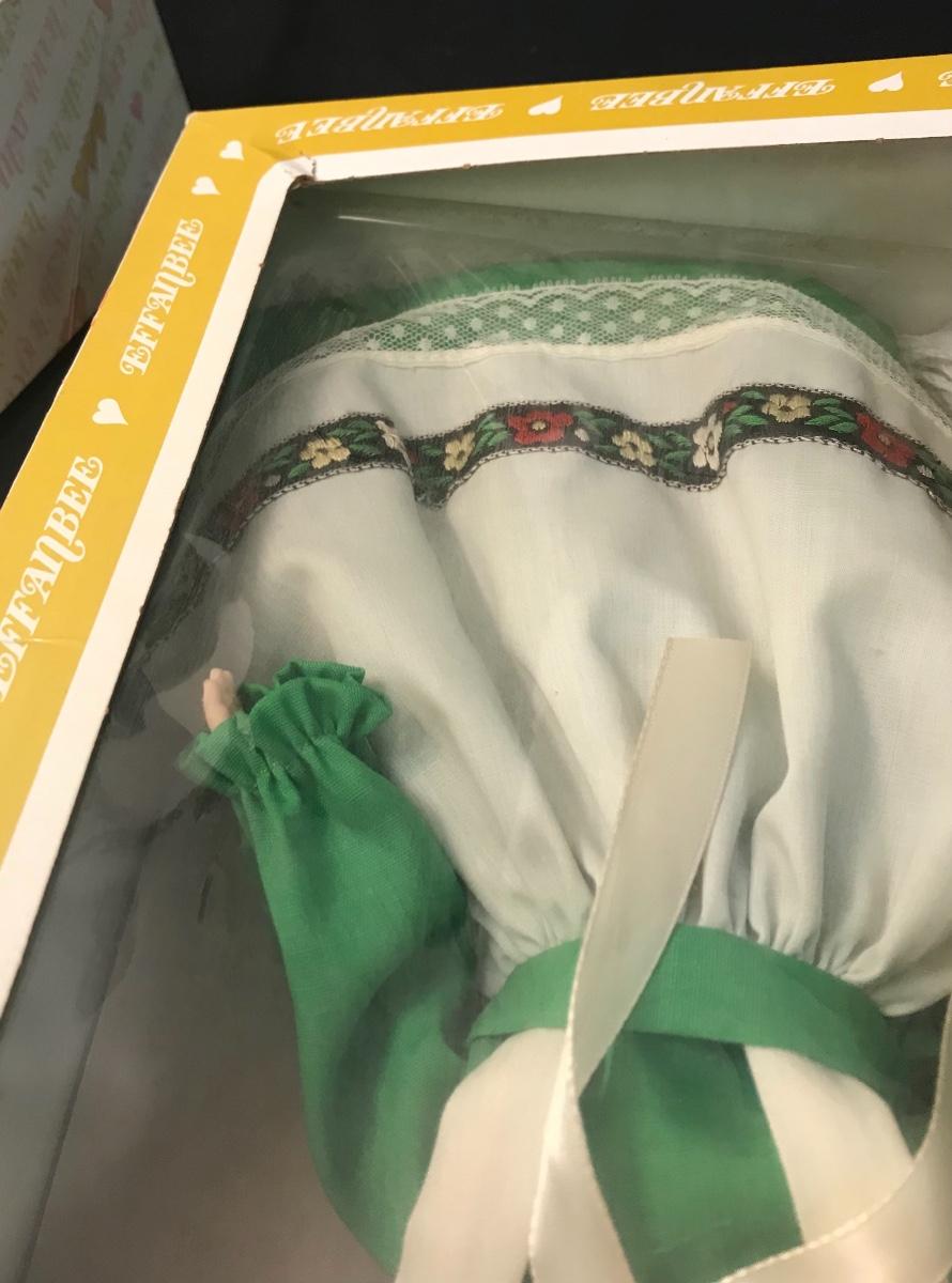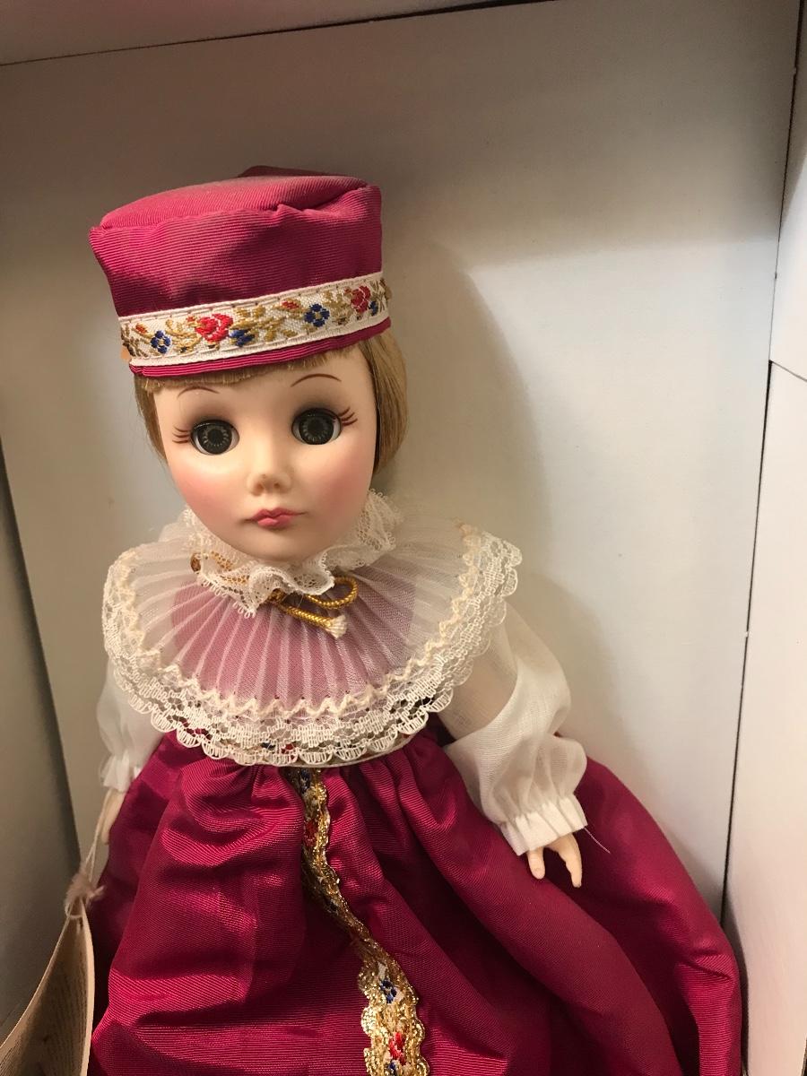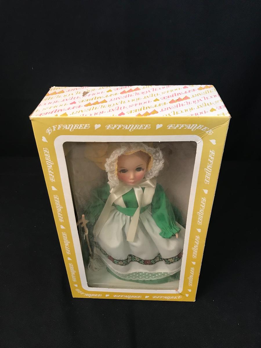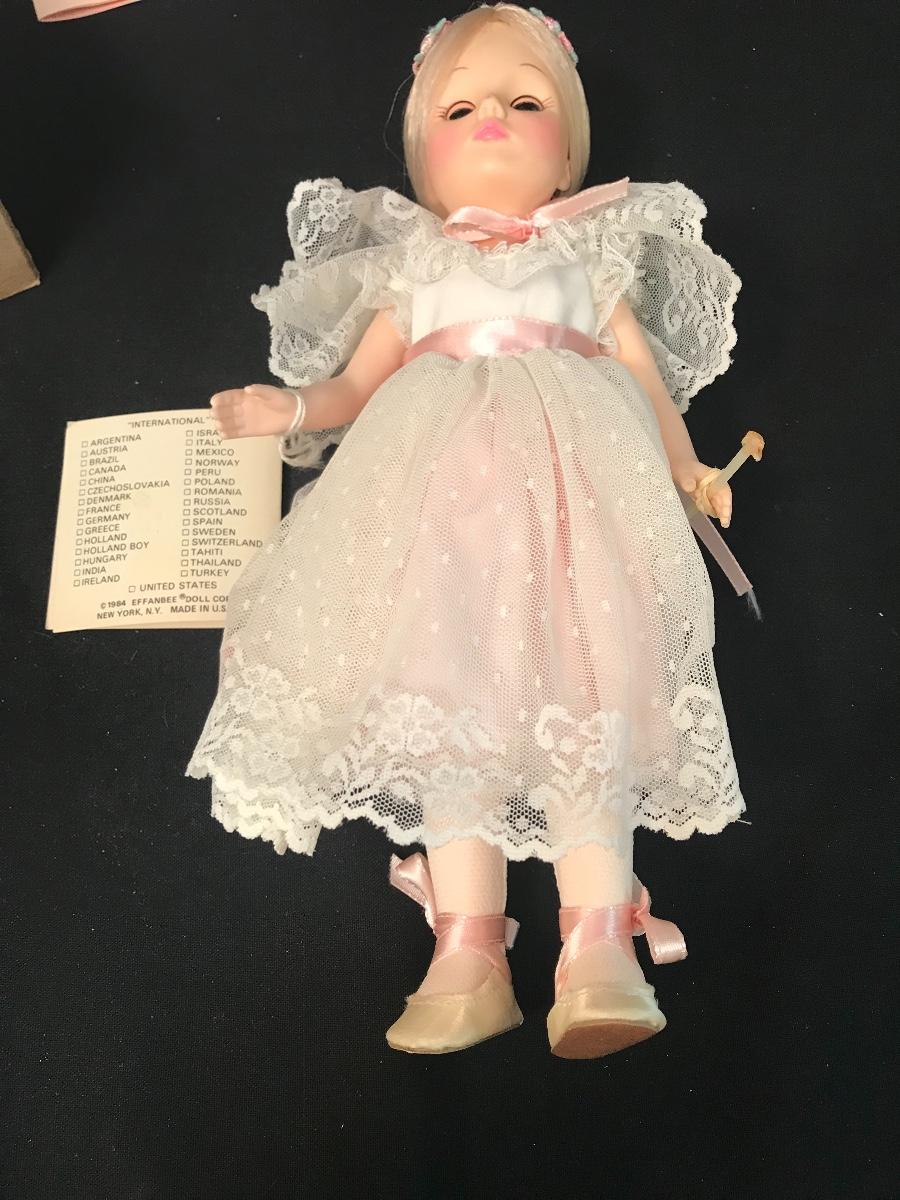 Three Effanbee Vintage Dolls - Sugar Plum Fairy, Mother Hubbard & Rapunzel. Dolls are largely in like new condition, Sugar Plum Fairy has been disconnected from packaging and one shoe is not completely on foot. Mother Hubbard and Rapunzel are still attached to internal packaging. Boxes show shelf wear and plastic film is coming away from cardboard in some places. Please see all pictures as they are the best representation of the items. The pictures show condition, measurements if taken, and what is included in the lot. Due to the large amount that we photograph and the time frame, we are not always able to take measurements. All items unless noted, are pre-owned and have been used. If you purchased furniture, you must bring help. We do not allow one person to carry large furniture out on their own. Bring help, tools and a truck for the safety of our client’s homes, and your personal safety. Company policy. Thank you.
