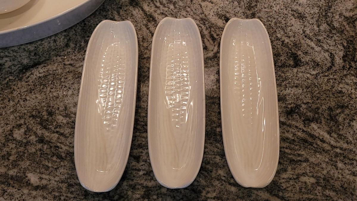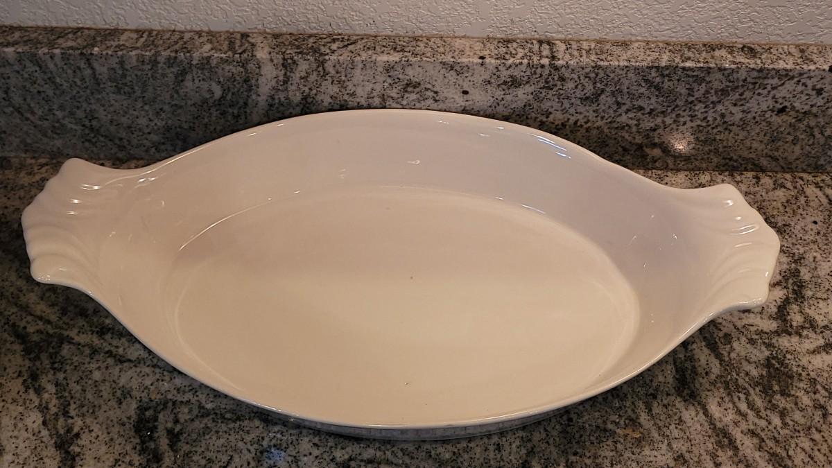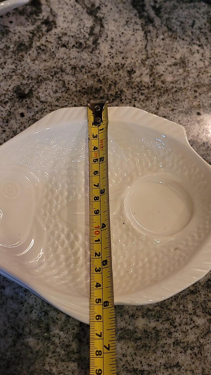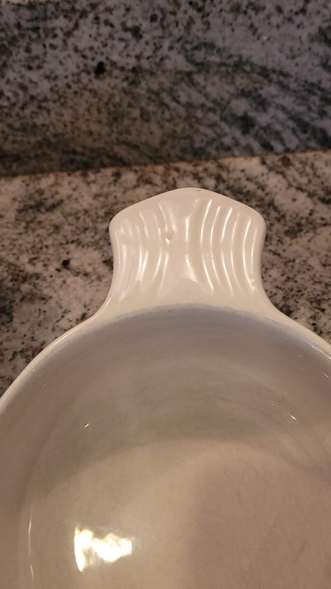 Casserole Dish (marked), Bowl, (2) Fish Plates (marked), (3) Corn Plates, (2) Shell Dishes. All matching glazes.