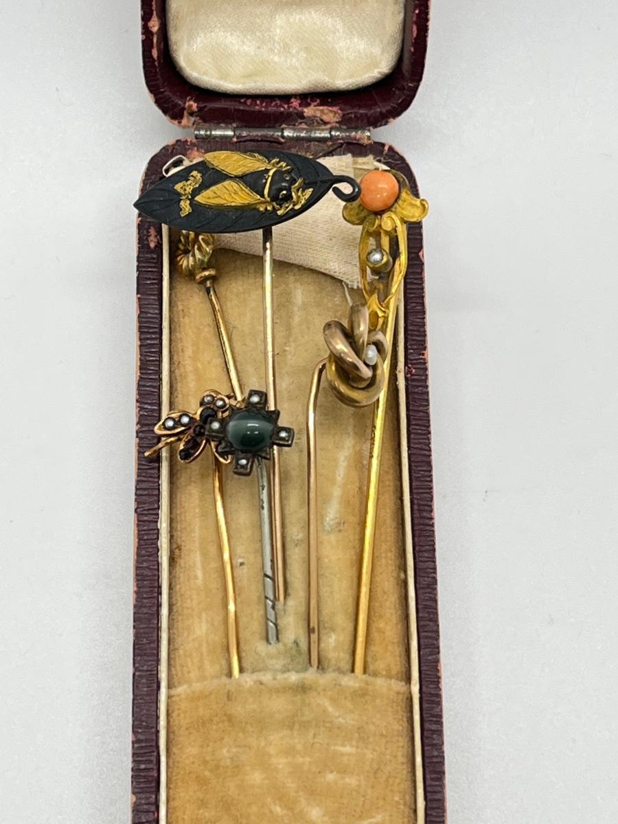 LOT 57: Vintage/Antique Stick Pin Collection in Hinged Case