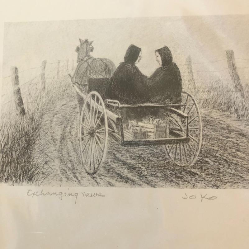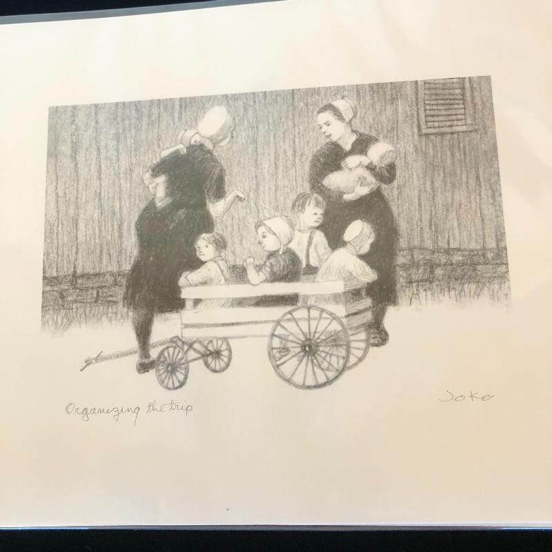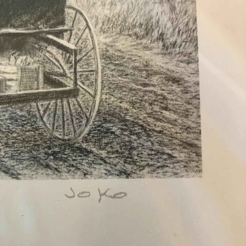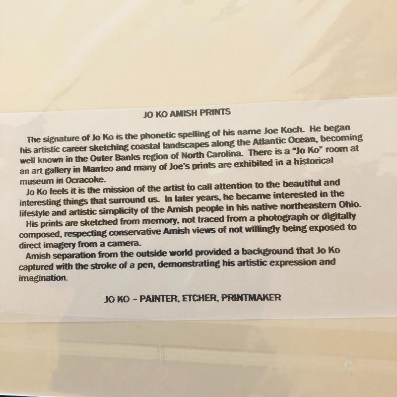 Expand your culinary skills and knowledge of the Amish and Mennonite by this lot! There are sixteen cookbooks, one DVD, three signed Joe Koch “Jo Ko” prints and six baskets! The cookbooks include ten spiral bound cookbooks, four soft back cookbooks and two hard back books. The “Heading Home” print measures 8” x 10” and the “Organizing the Trip” and “Exchanging News” measures 10” x 8”. All three prints are signed. Shipping available.