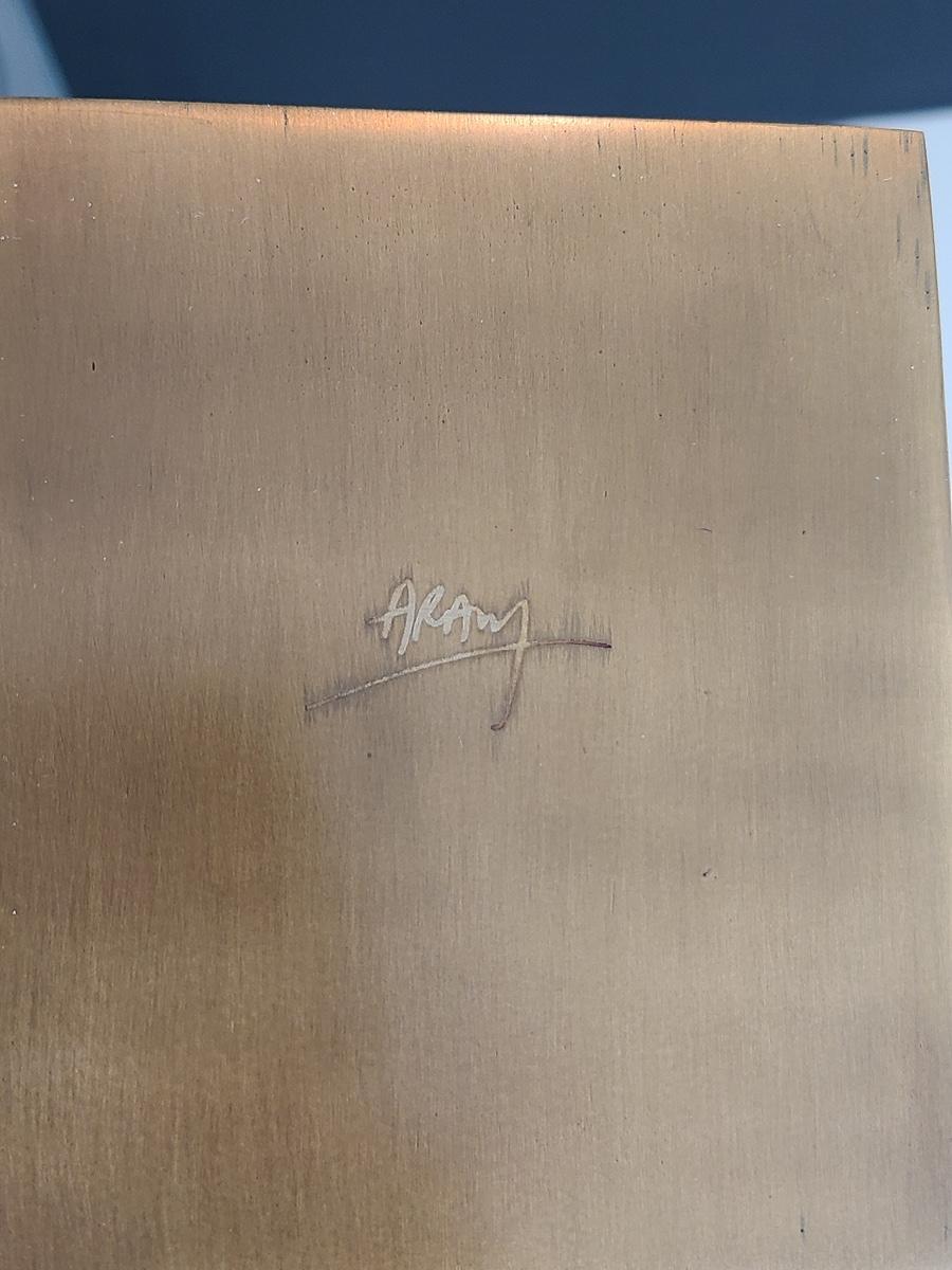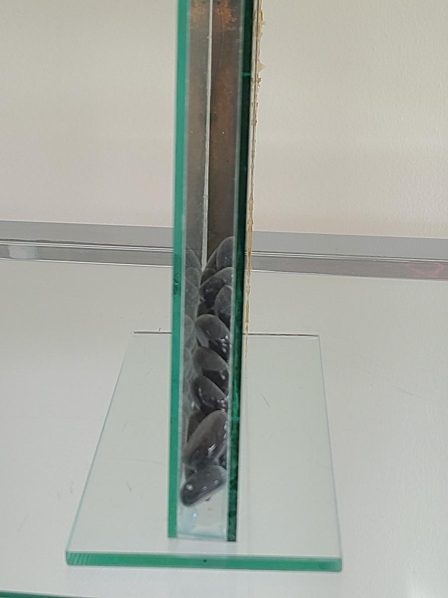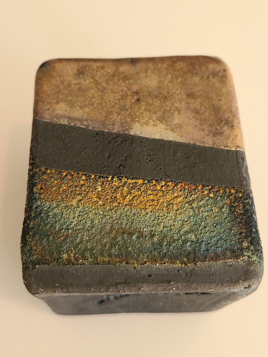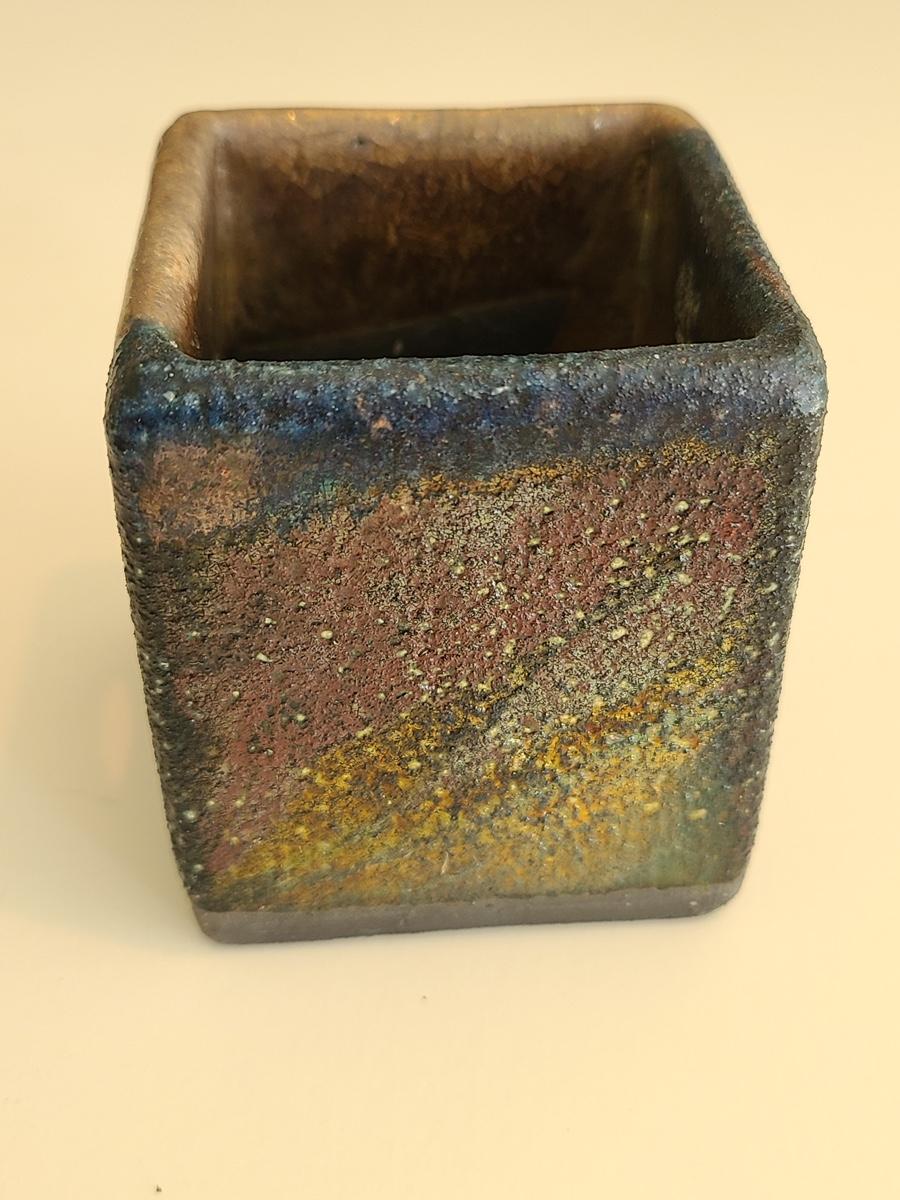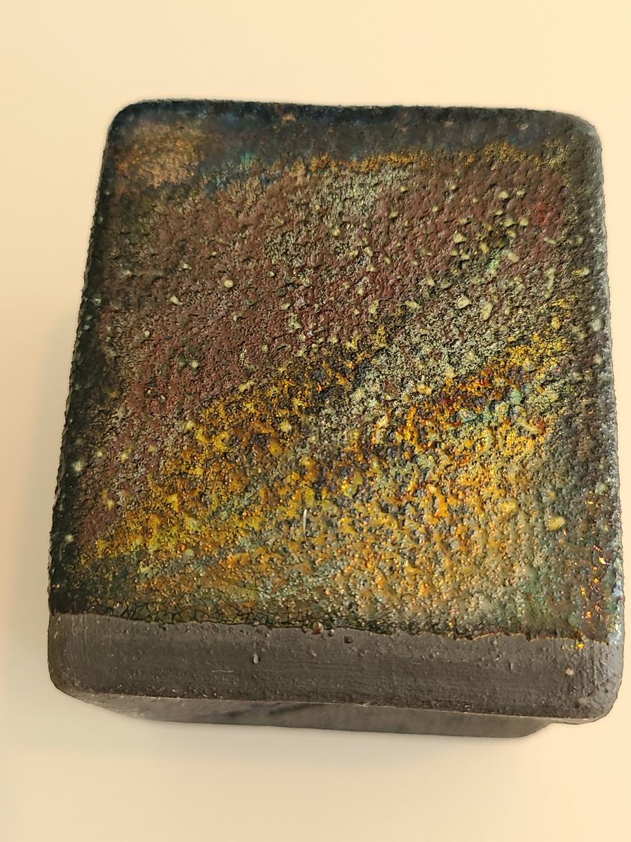 Sharp, unique lines on a stunning glass vase. This unique angled vase is made of metal and glass. The back of the metal does show some wear. Also included is a studio book for artist Shlomi Haziza, and artist made metal hook for ornament hanging, and small pottery tea light holder with peep window. Fun collection of artists works. Please see all pictures for content of the lot, condition of the lot, and measurements if taken. Pictures are the best representation of the items listed and items are untested unless indicated in description. Thank you for looking and have fun bidding![