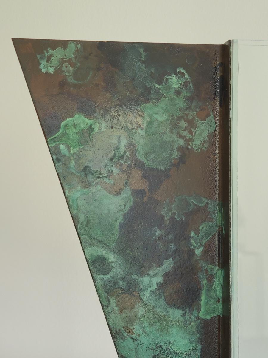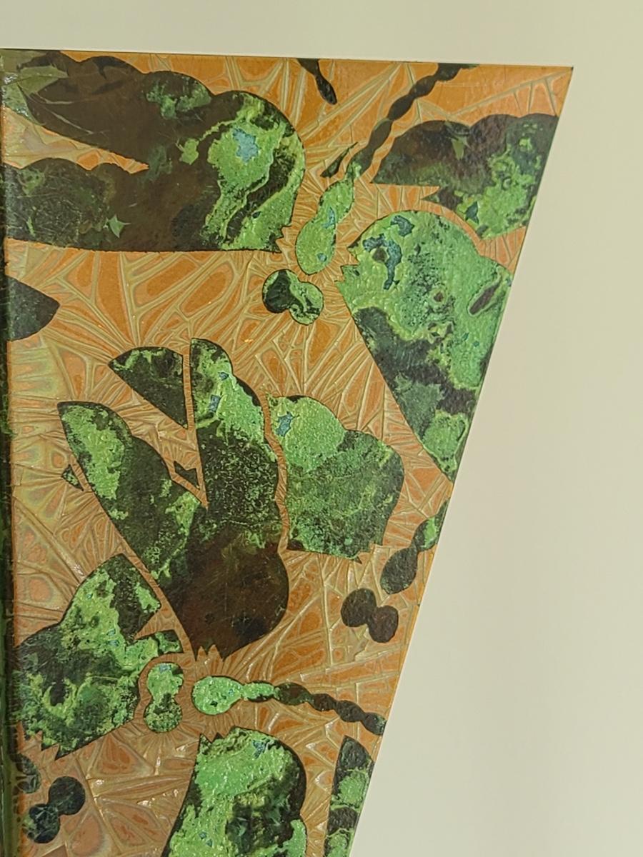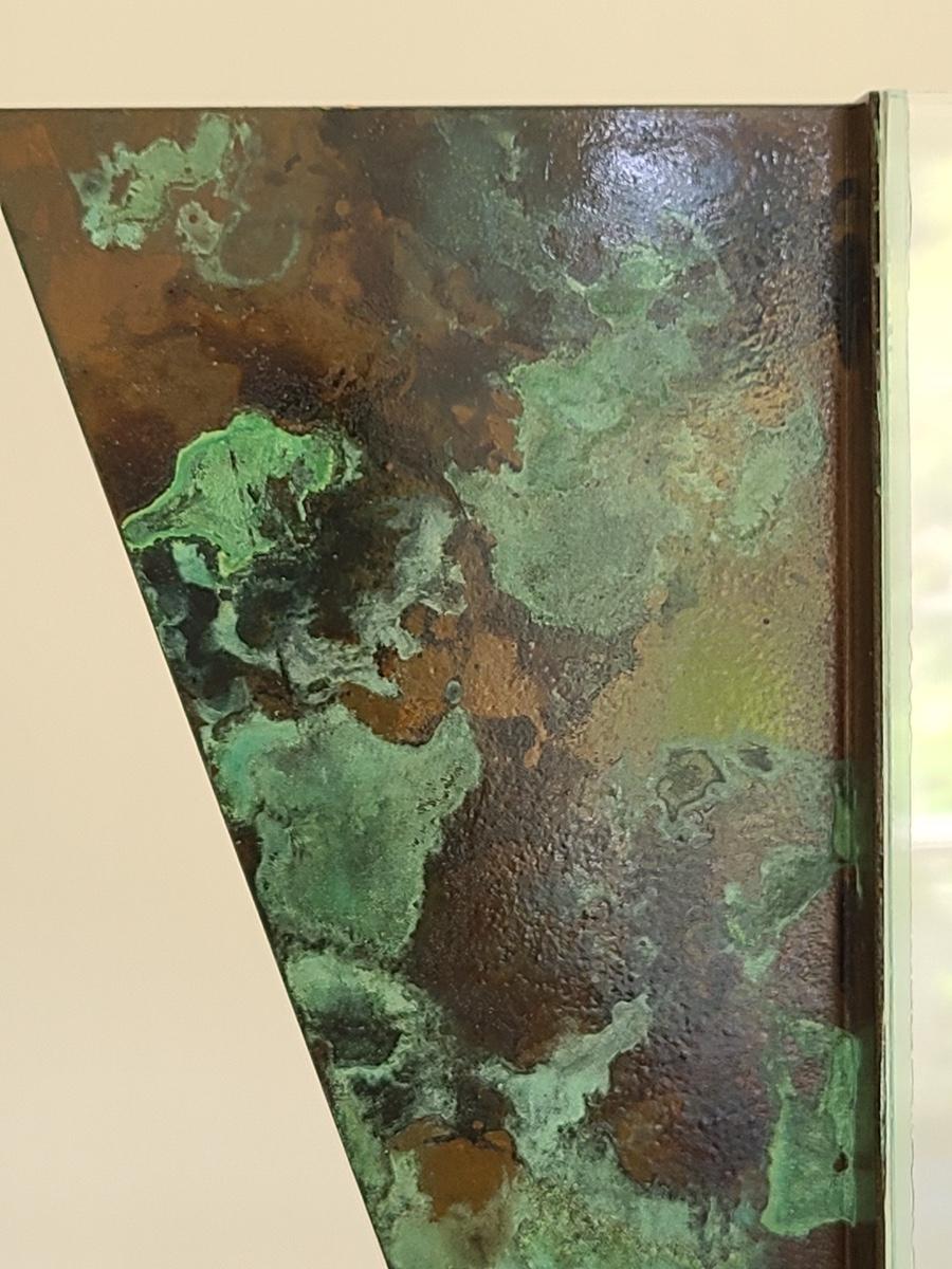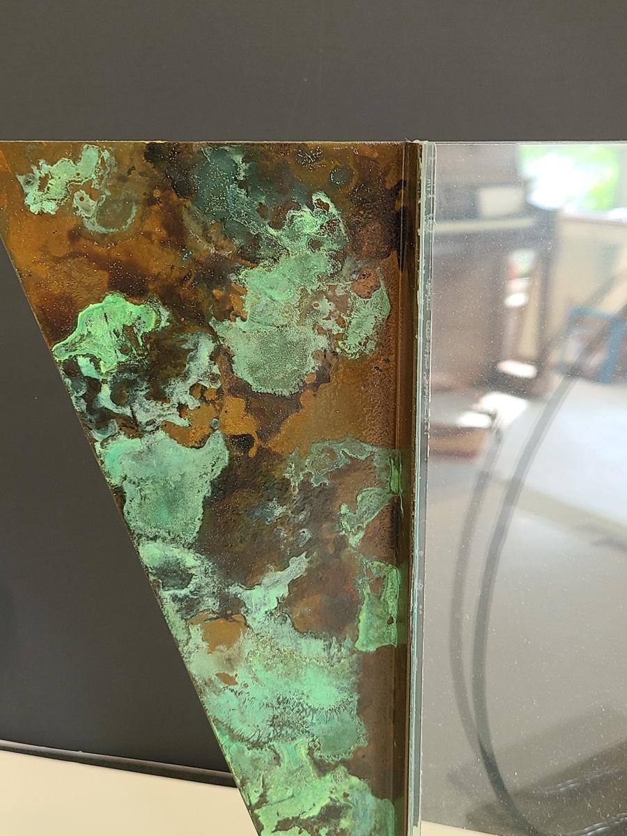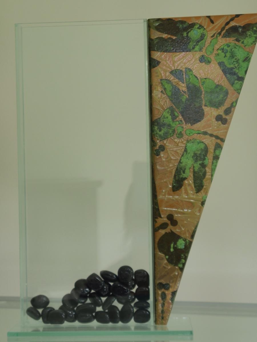 Sharp, unique lines on a stunning glass vase. This unique angled vase is made of metal and glass. The back of the metal does show some wear. Also included is a studio book for artist Shlomi Haziza, and artist made metal hook for ornament hanging, and small pottery tea light holder with peep window. Fun collection of artists works. Please see all pictures for content of the lot, condition of the lot, and measurements if taken. Pictures are the best representation of the items listed and items are untested unless indicated in description. Thank you for looking and have fun bidding![