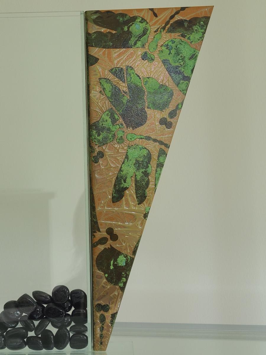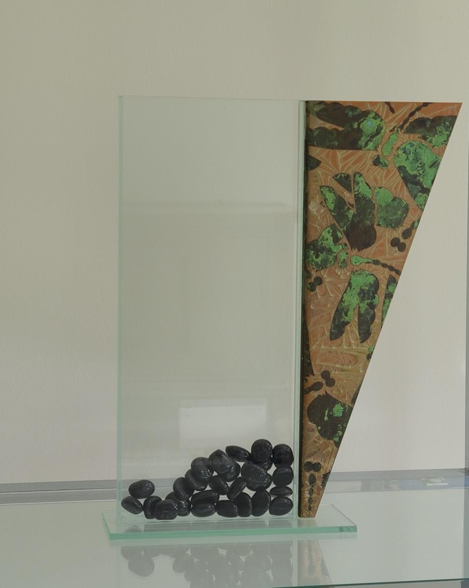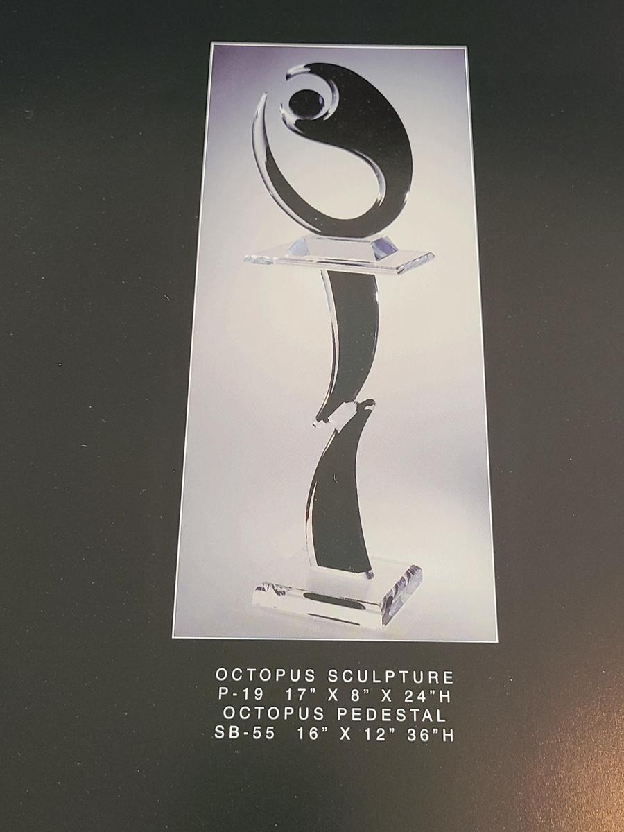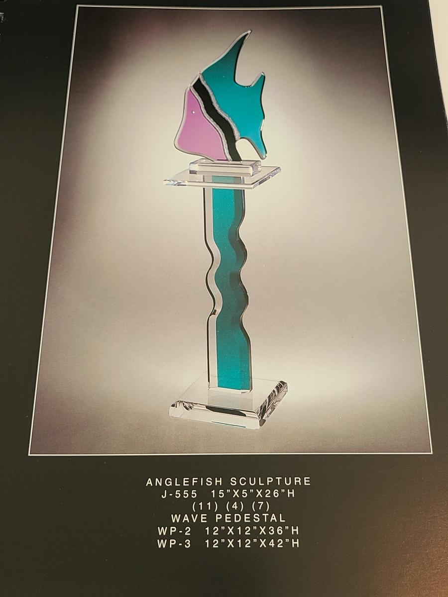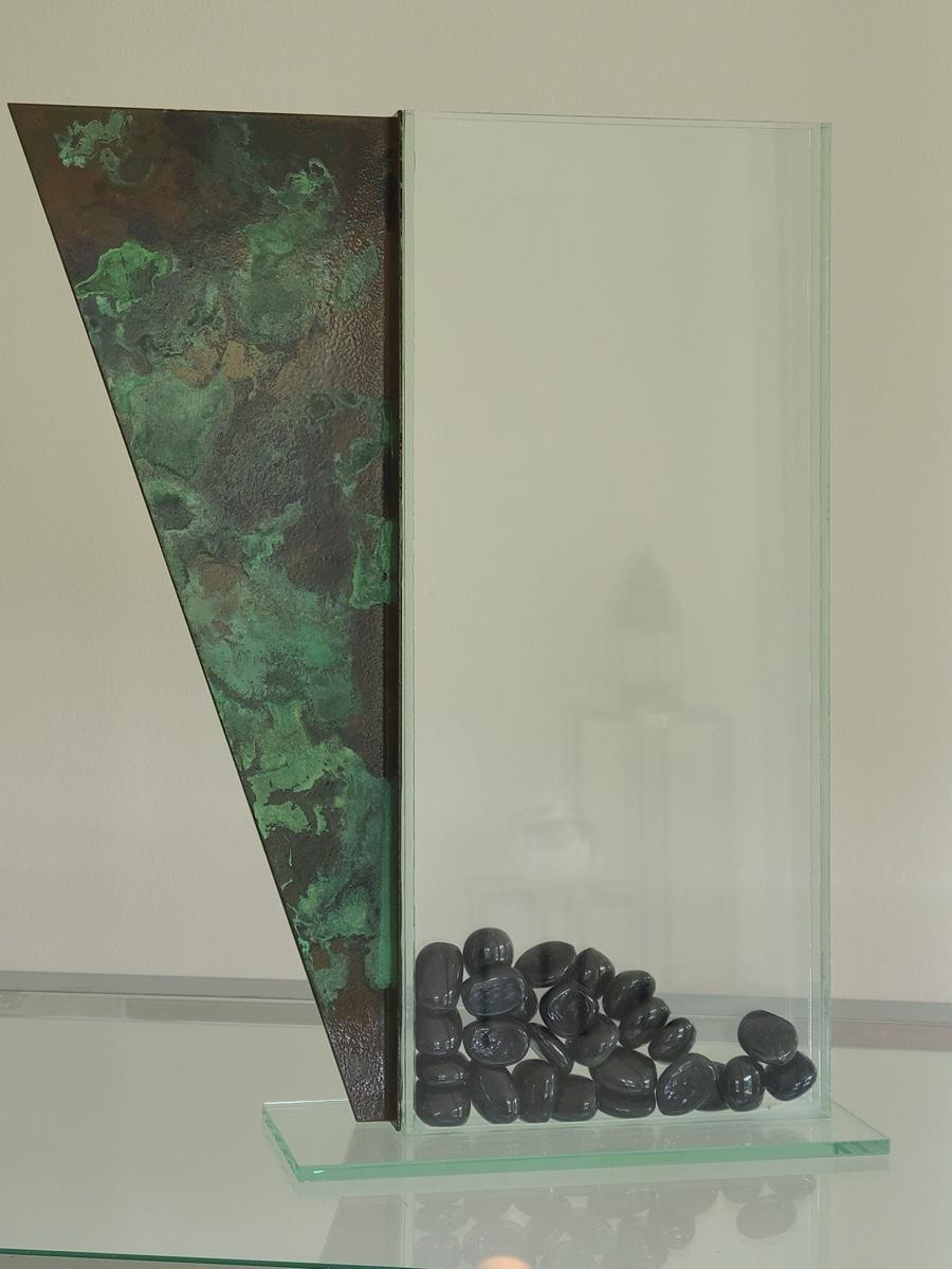 Sharp, unique lines on a stunning glass vase. This unique angled vase is made of metal and glass. The back of the metal does show some wear. Also included is a studio book for artist Shlomi Haziza, and artist made metal hook for ornament hanging, and small pottery tea light holder with peep window. Fun collection of artists works. Please see all pictures for content of the lot, condition of the lot, and measurements if taken. Pictures are the best representation of the items listed and items are untested unless indicated in description. Thank you for looking and have fun bidding![