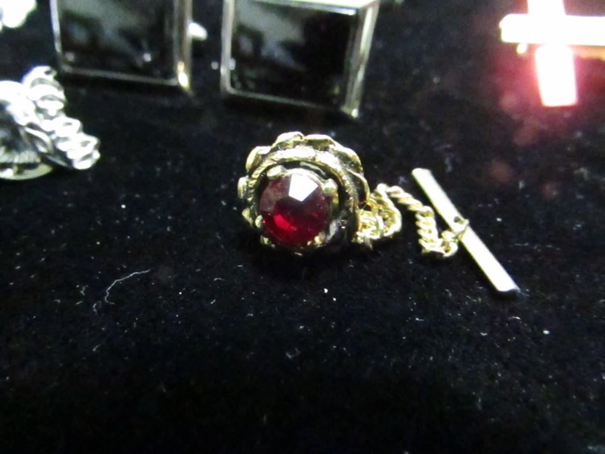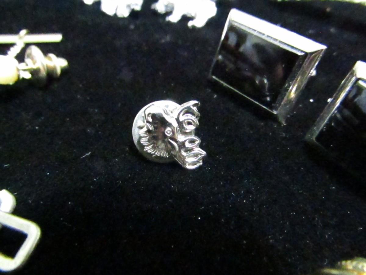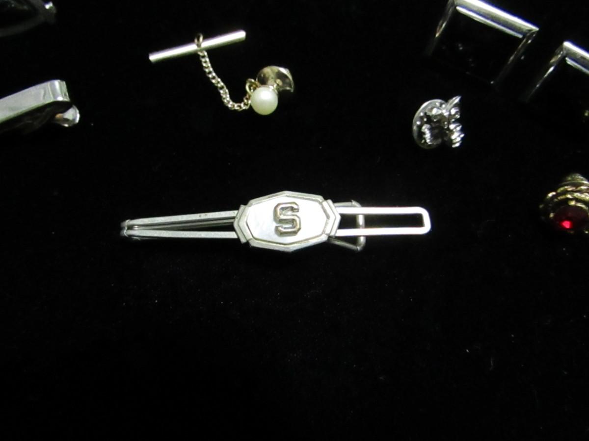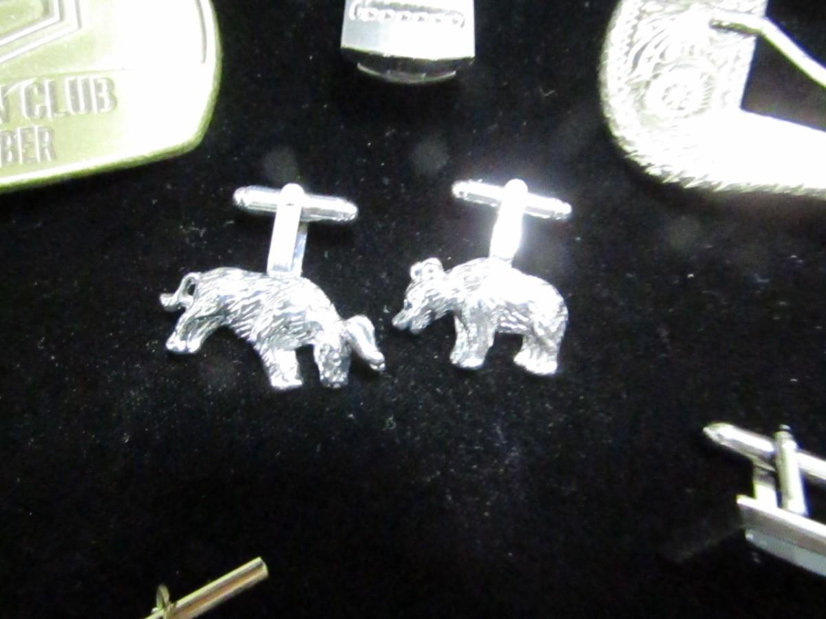 LOT 57 BELT BUCKLES, TIE TACKS AND CLIPS, CUFFLINKS