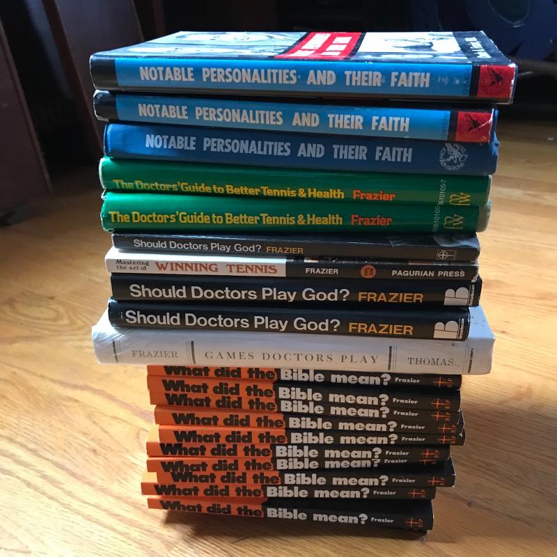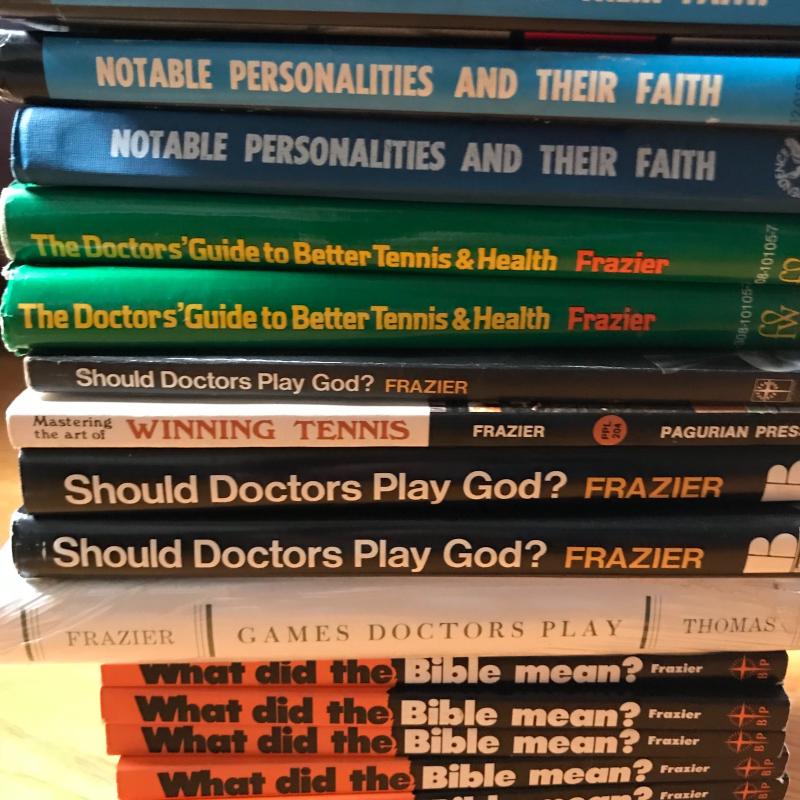 Lot includes multiple copies of various books by consignee’s late husband, Claude Frazier. He was s pioneer in allergy treatment in wnc. See pics for titles. Shipping available or local pickup in Asheville, NC.