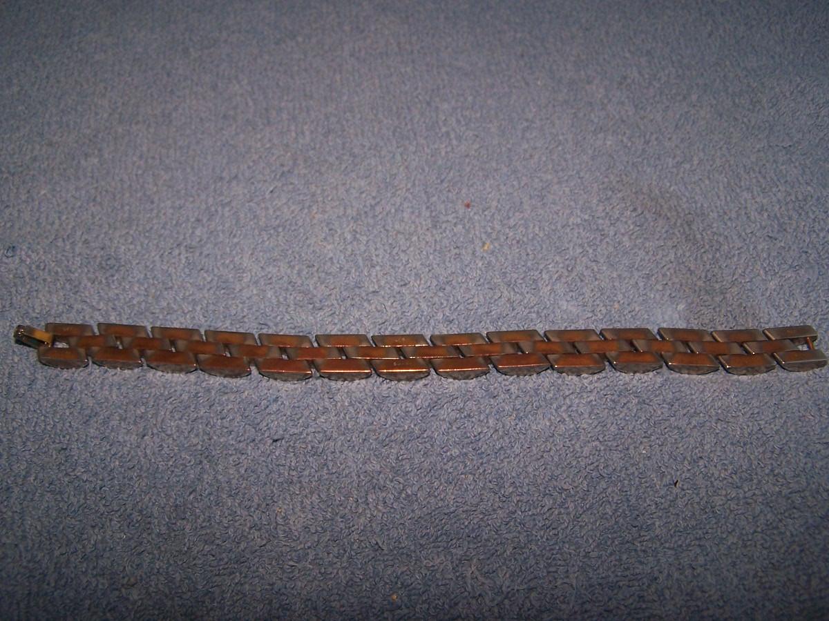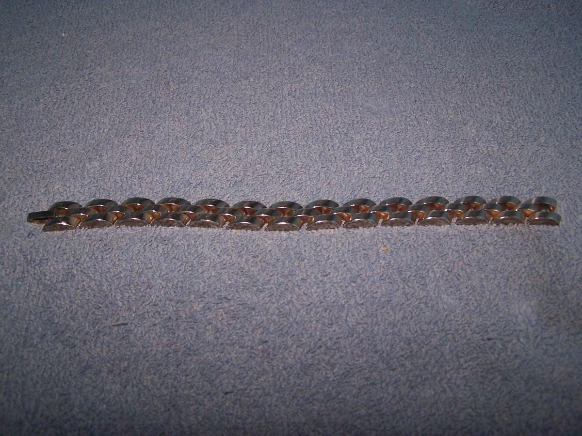 THIS IS A FABULOUS HEAVY MEXICO 925 BRACELET! IT IS MARKED, BUT, SOME COPPER COLOR IS SHOWING THROUGH, MAINLY, BACKSIDE... 76.76GR. 9'' LONG. LIGHT WEAR..