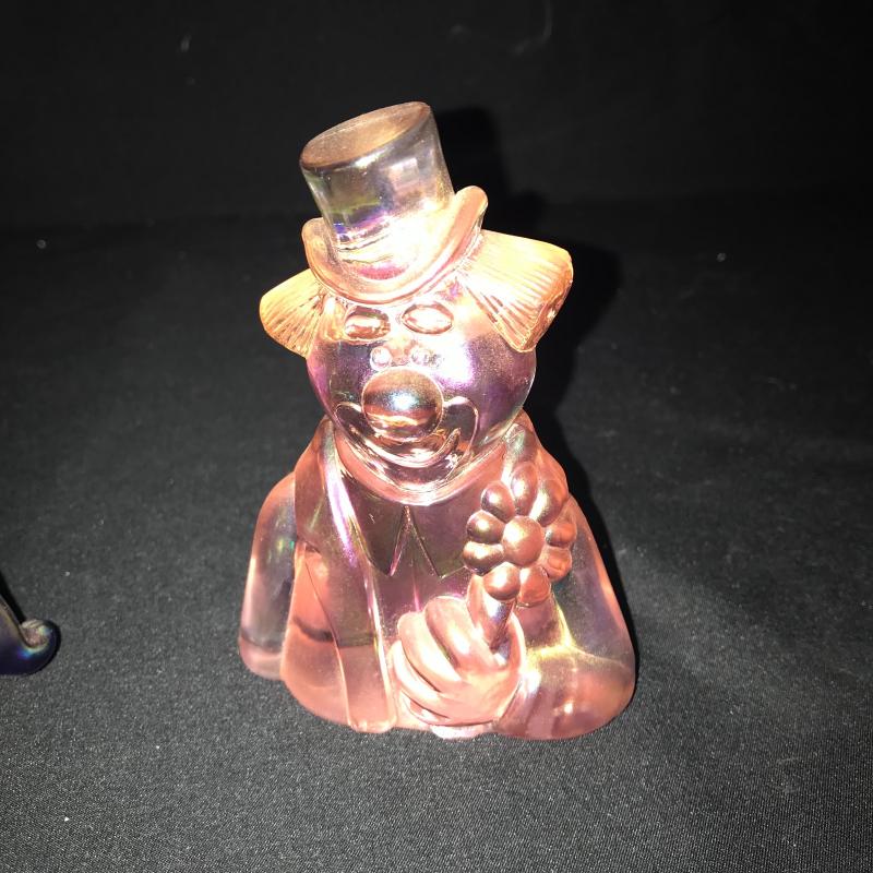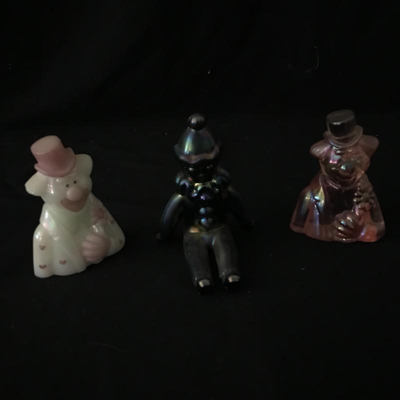 Two matching busts and one sitting clown all made by Fenton. Each aprox. 4” tall. Lot is available for shipping or local pick up in Maggie Valley, NC.